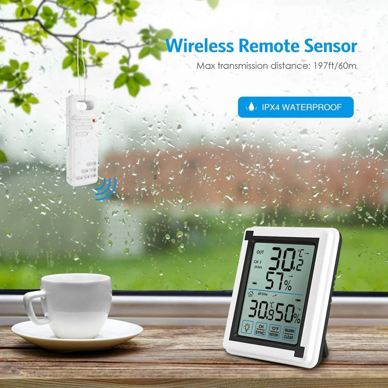 Measuring indoor and outdoor temperature and humidity, Celsius and Fahrenheit conversion
