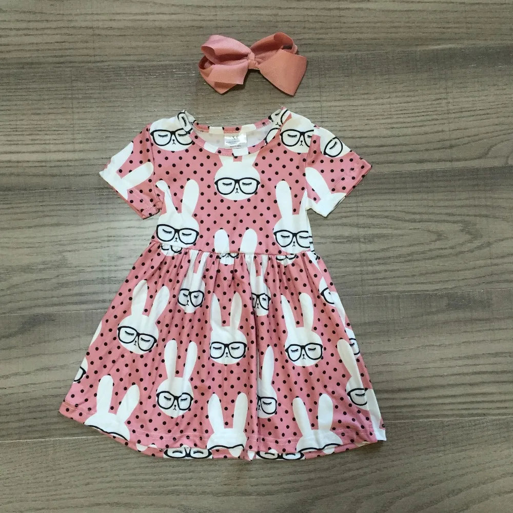 Пасхальное платье для маленьких девочек платье с короткими рукавами и принтом кролика для девочек, мягкое молочное шелковое платье Эксклюзивное платье с бантом для девочек
