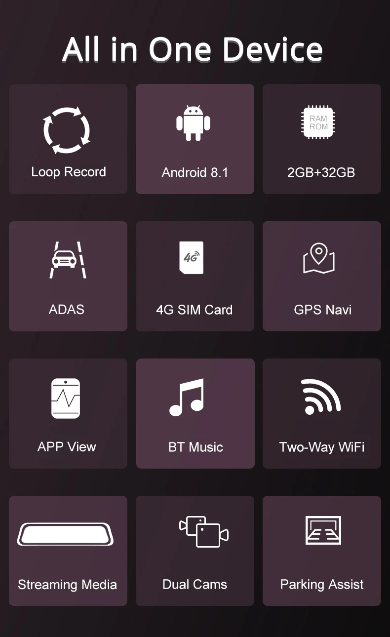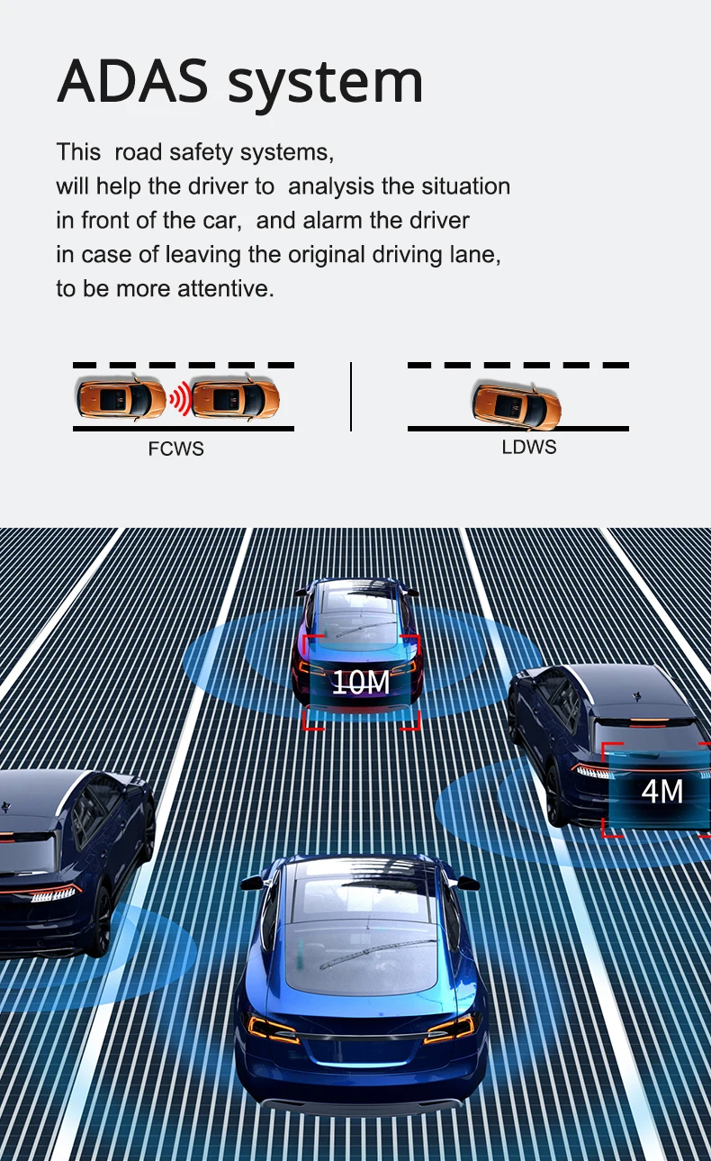 Функция ADASПокидании полосы Предупреждение Системы (LDWS)Сонное или отвлекающееся Вождение значительно увеличивает вероятность аварии на дороге.LDWS предупредит водителя, когда транспортное средство выходит из полосы движения со скоростью более 50 км/ч. Предупреждение о столкновении (FCWS)Несчастные случаи можно избежать, сохраняя безопасное расстояние.Система Предупреждение о безопасности дорожного движения Вычисляет расстояние в реальном времени между вашим автомобилем и автомобилем перед вами,Во время вождения выше 30 км/ч на скоростных скоростях или до 30 км/ч в оживленном городе,И вопросы 3-уровня раннего предупреждения водителя в зависимости от опасности столкновения. Предупреждение о выезде переднего транспортного средства (FVDW)Когда ваша машина остановлена на пересечении или в движении,Интеллектуальная система наведения Информирует вас о том, что переднее транспортное средство начало двигаться,Предотвращает задержку ответа только на чехол, который вы перестанете смотреть вперед.