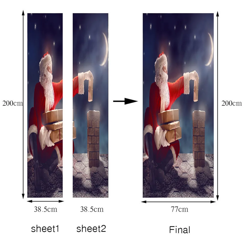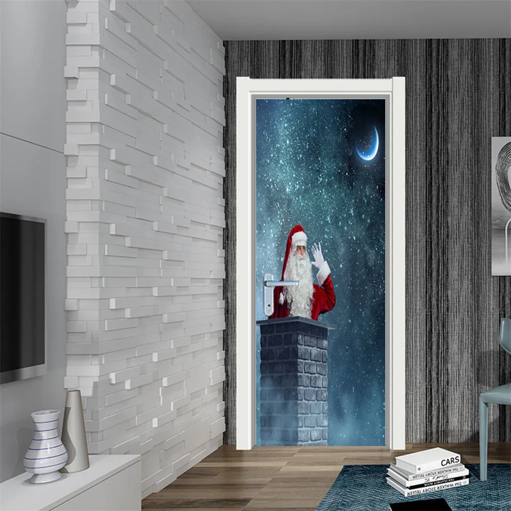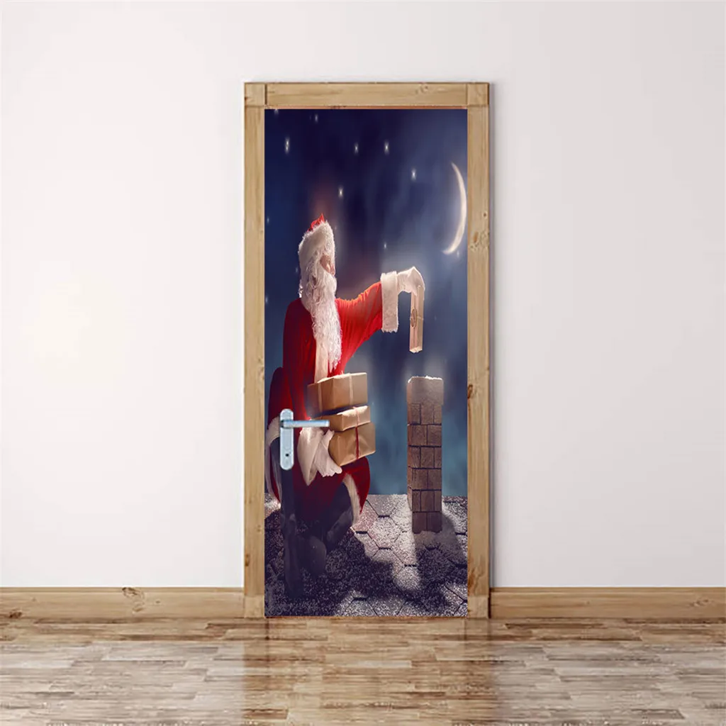 3D Рождественские наклейки для двери гостиной Фотообои Рождественский Декор Описание товара