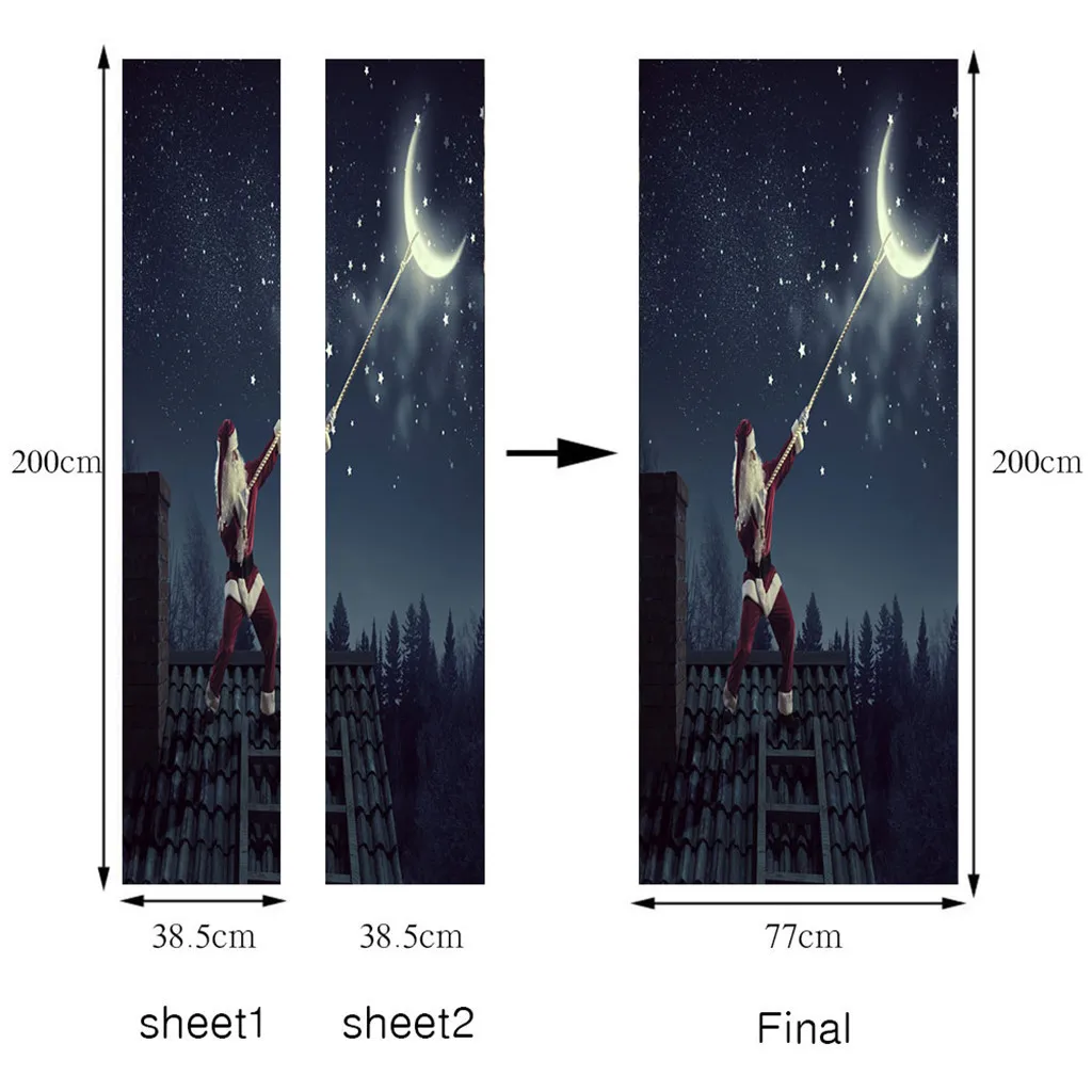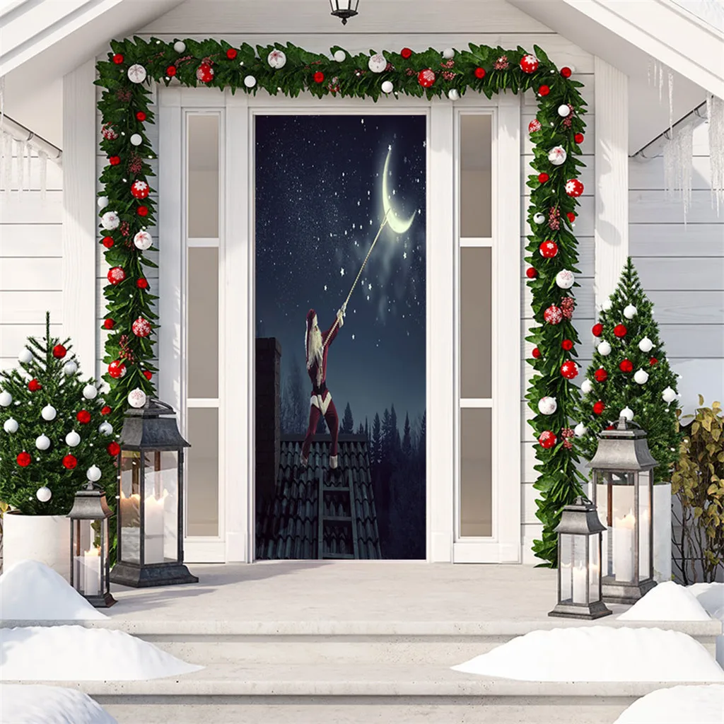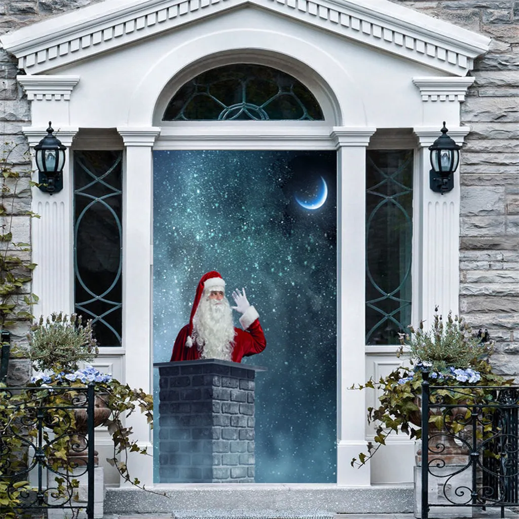 3D Рождественские наклейки для двери гостиной Фотообои Рождественский Декор Описание товара