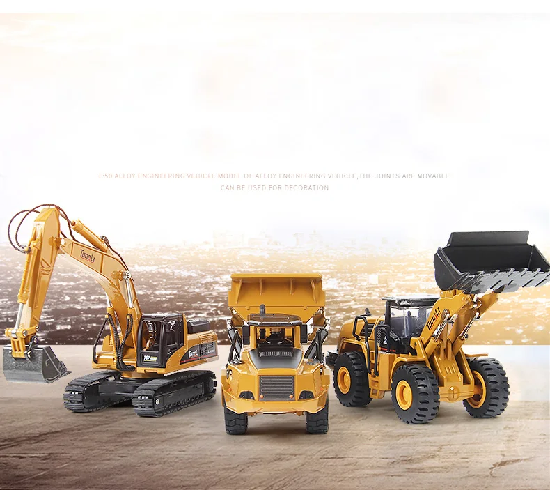 3 шт. TongLi 1:50 Самосвал экскаватор колесный погрузчик литье под давлением металлический инженерный набор транспортных средств коллекция игрушек для мальчиков Рождественский подарок