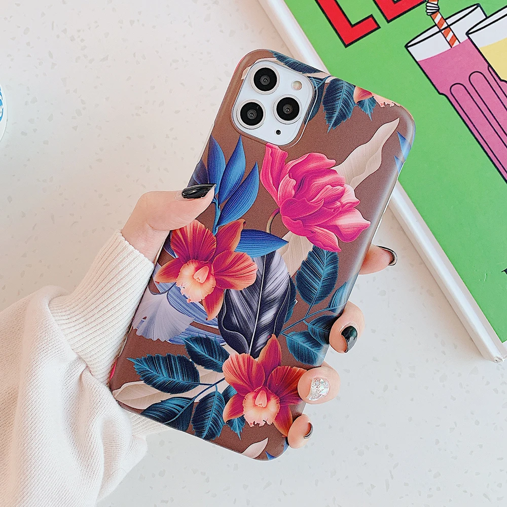 Винтажный чехол для телефона iPhone 11 Pro Max XR X XS Max 7 8 6 Plus с акварельными цветочными листочками, мягкий чехол IMD с покрытием линии