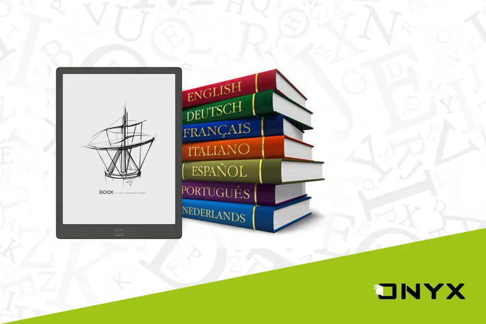 В ONYX BOOX MAX 3 предустановлены англо-русский и русско-английский словари. Для просмотра перевода слова достаточно выбрать его в тексте.