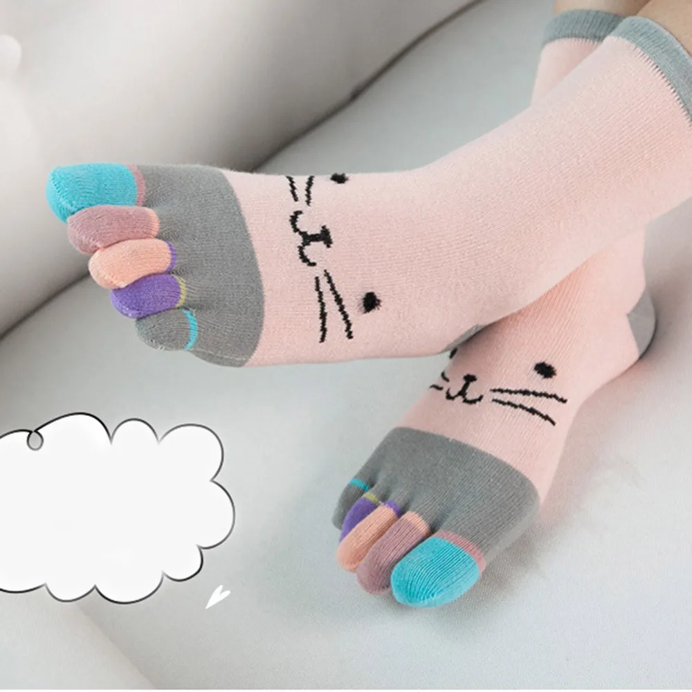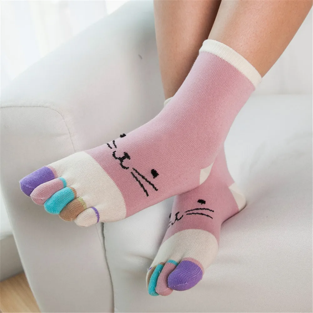 Женские разноцветные лоскутные носки с пятью пальцами, хлопчатобумажные забавные носки