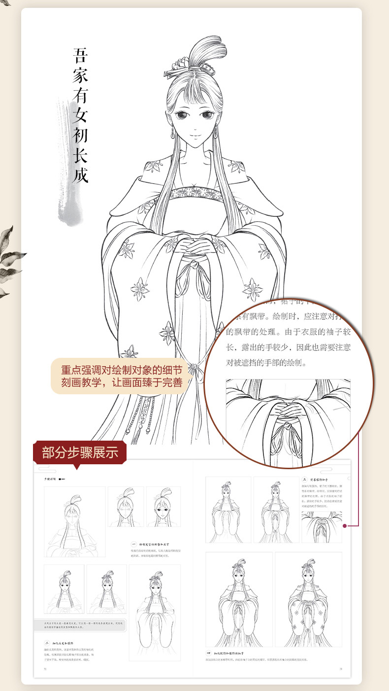 Китайская древняя красота иллюстрации Рисование комический мультфильм линия