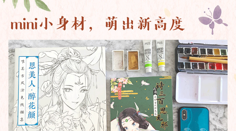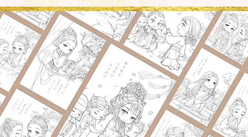 Книга-раскраска антистресс Die Lian Hua + Qing Ping Yue в китайском древнем стиле 2