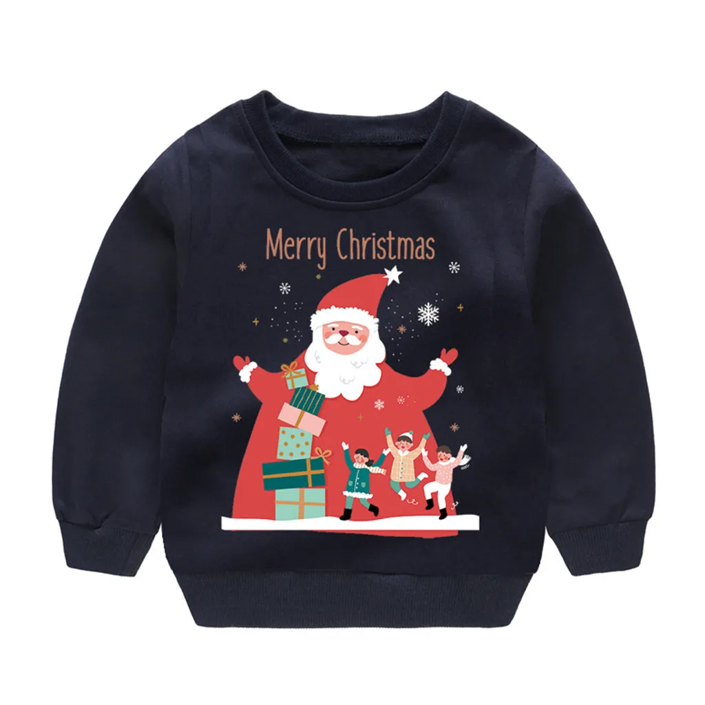Рождественский свитер с Санта Клаусом для маленьких мальчиков и девочек, пуловер, топы, футболка