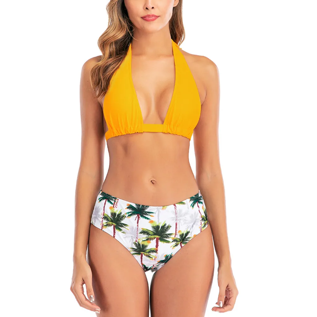 Женский купальник с принтом дерева, высокая талия, бандаж, бикини, пуш-ап, купальник, пляжная одежда, купальник