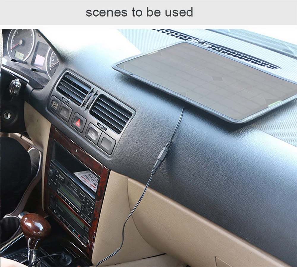 При подключении через прикуриватель убедитесь, что прикуриватель и аккумулятор всегда подключены, независимо от того, запускается ли двигатель автомобиля или нет. Для моторов и моторных лодок вы можете выбрать провод с зажимом для сома, чтобы напрямую подключить положительный и отрицательный аккумулятор, и вам нужно добавить модуль управления, чтобы предотвратить перезарядку. (Примечание: Помните! Во время процесса установки зажим для сома должен быть подключен к положительным и отрицательным клеммам батареи перед подключением к концу солнечной панели. Чтобы удалить изделие, вы должны наконец отсоединить зажим для кошки от аккумулятора. Обратите внимание на то, чтобы батарея сохраняла положительные и отрицательные электроды, а чехол был чистым.)