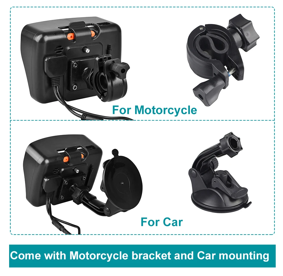 1) вездеходное устройство без боли, без усиления, так как этот GPS предназначен для использования большинства элементов, с которыми он может столкнуться, это система motrocycle GPS vavigation. Эта навигационная система Motrocycle GPS (также может использоваться с автомобилями) состоит из 4,3 дюймов сенсорный экран, который обеспечивает дружественный интерфейс, а также два силового кабеля, чтобы быть соединены либо автомобильного прикуривателя порт или АКБ для мотоциклов. Также в gps-навигаторе nav посылка-это всасывающее крепление, чтобы закрепить этот GPS на ветровом стекле или Монтажный кронштейн для подключения к ручкам вашего motrocycle для более удобного просмотра при ударе по трассе.