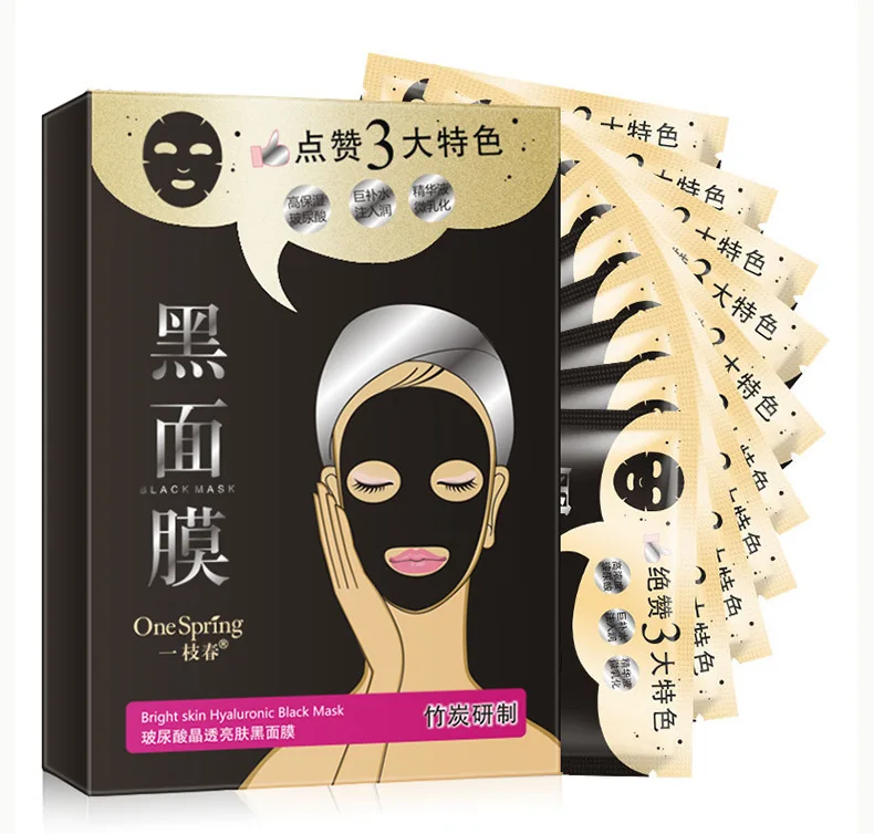 OneSpring 10 шт./компл. черная маска для лица с гиалуроновой кислотой, с украшением в виде кристаллов прозрачный Осветляющий, увлажняющий для удаления черных точек, уменьшает поры