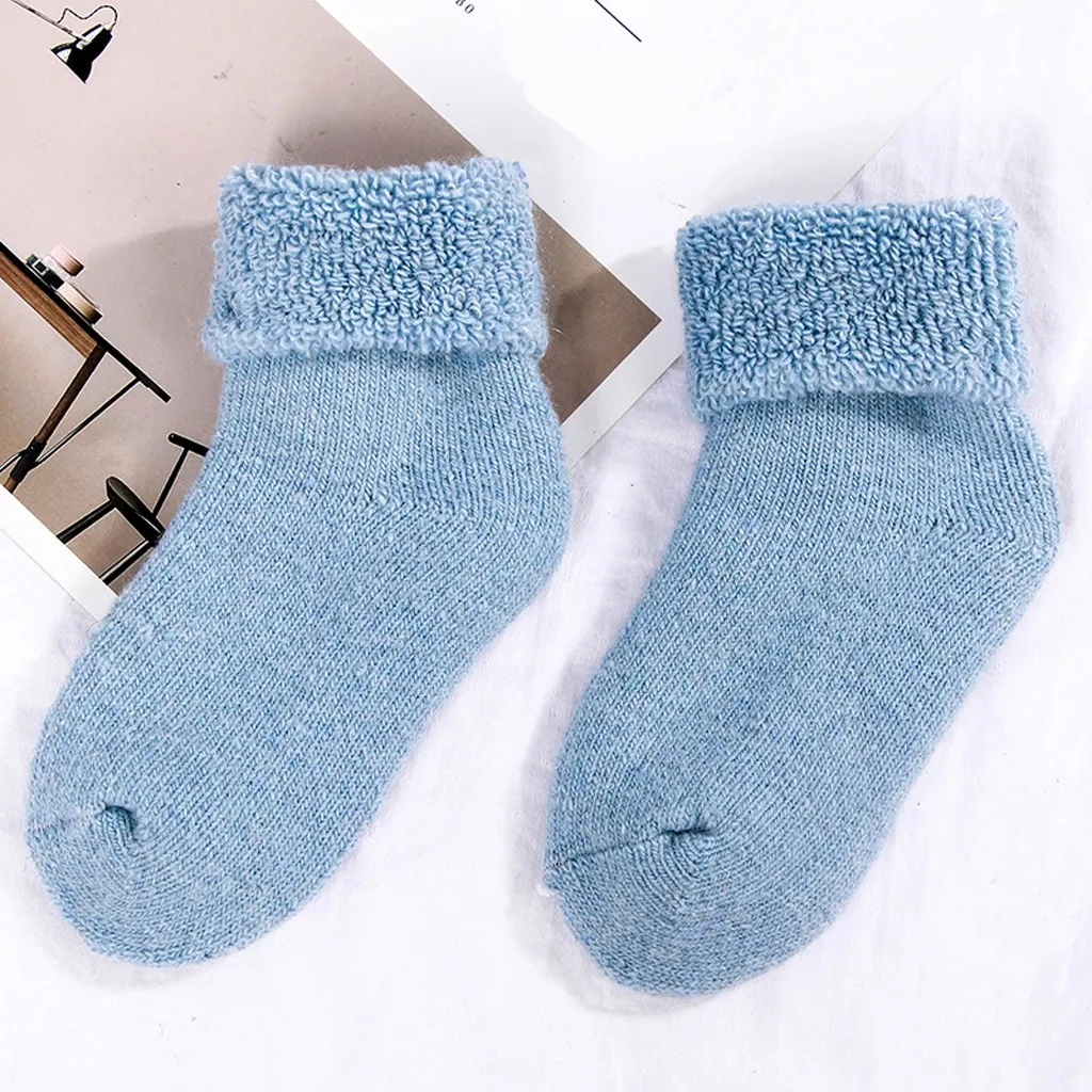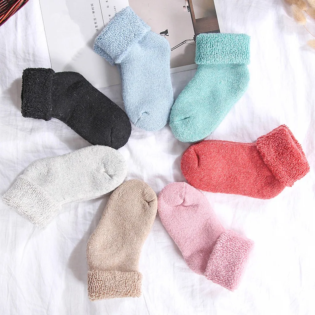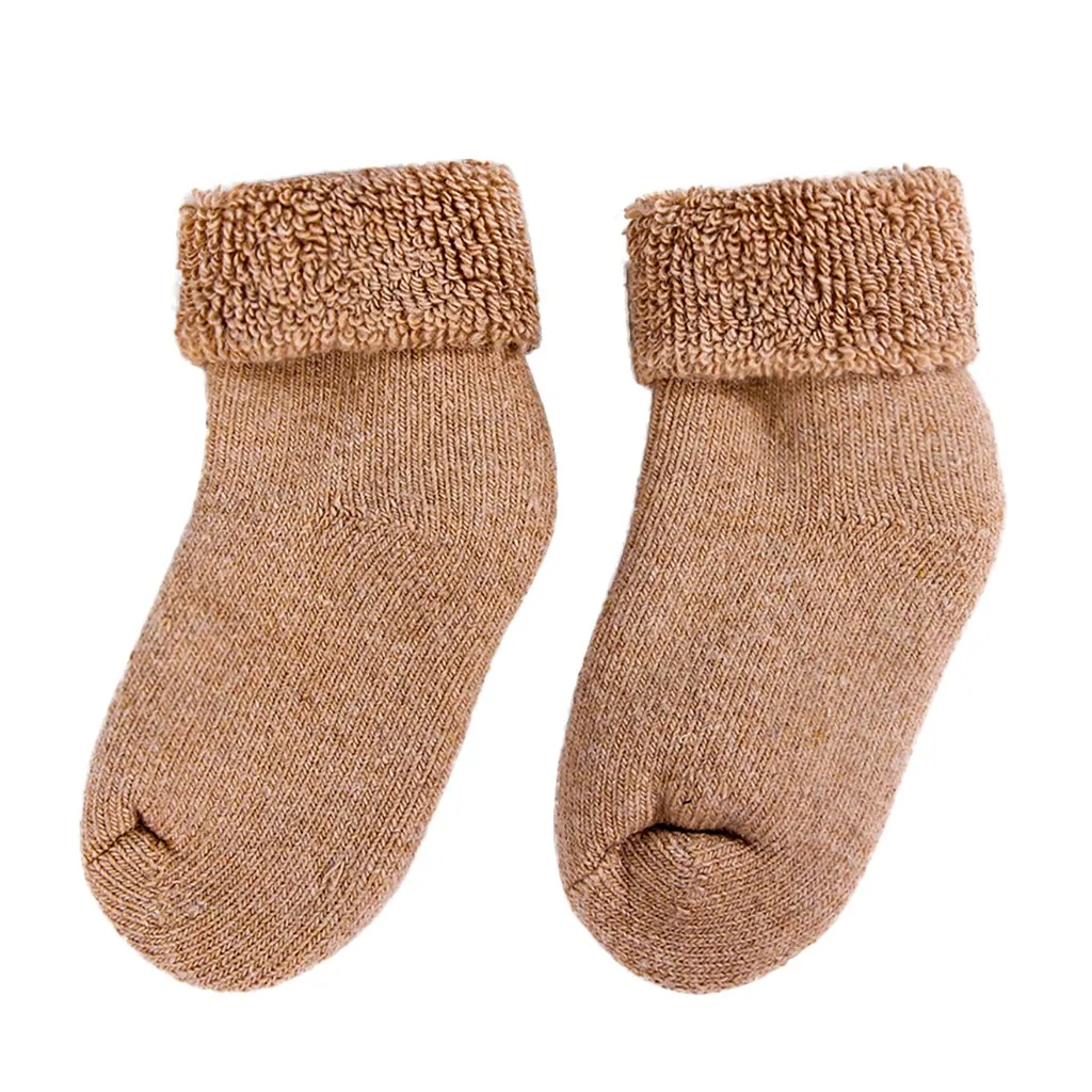 Зимние Утепленные шерстяные носки с отворотами для маленьких мальчиков и девочек Теплые махровые носки