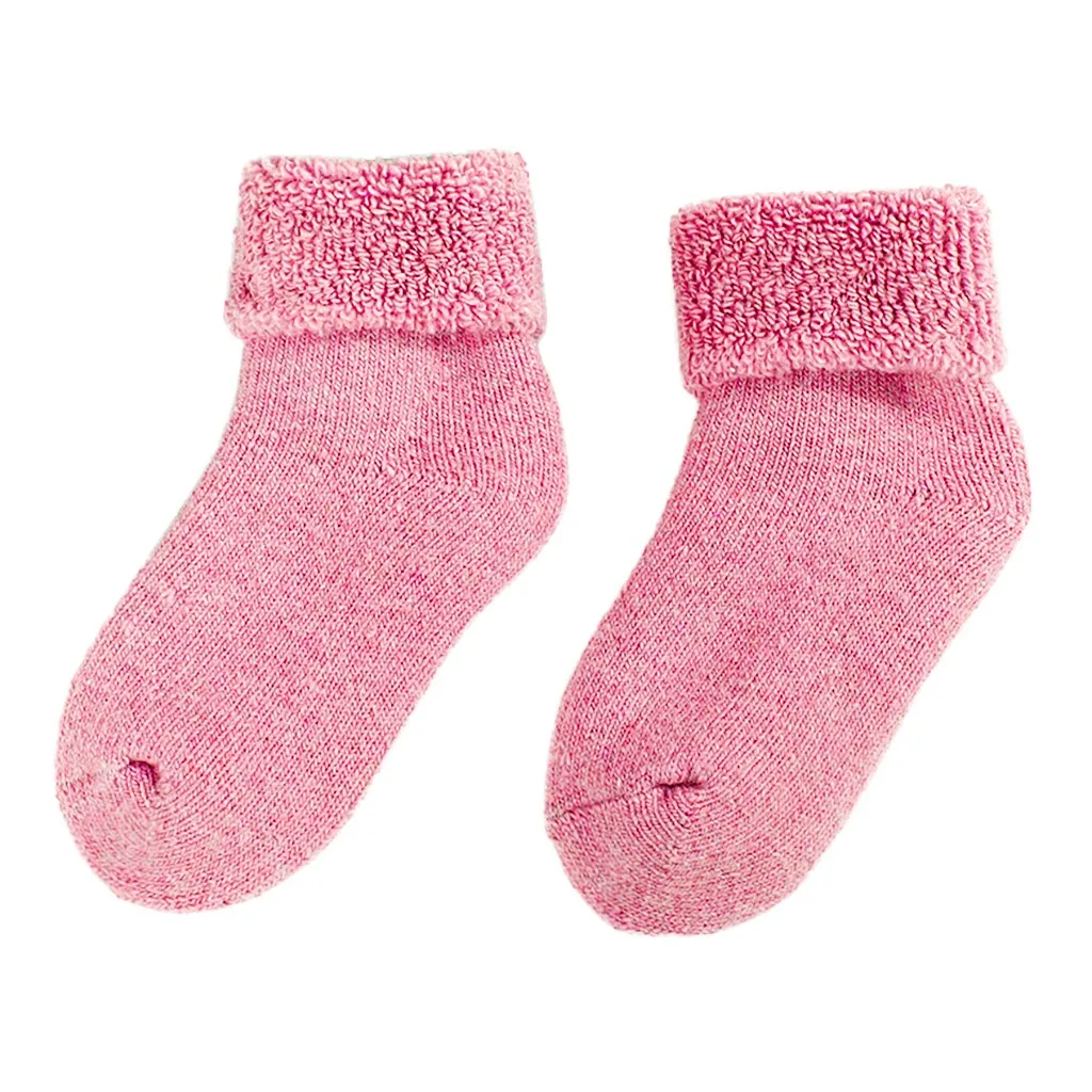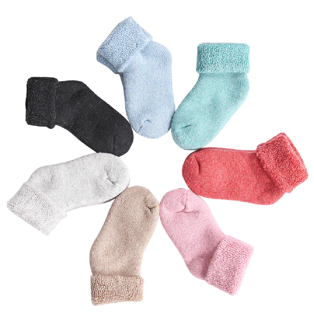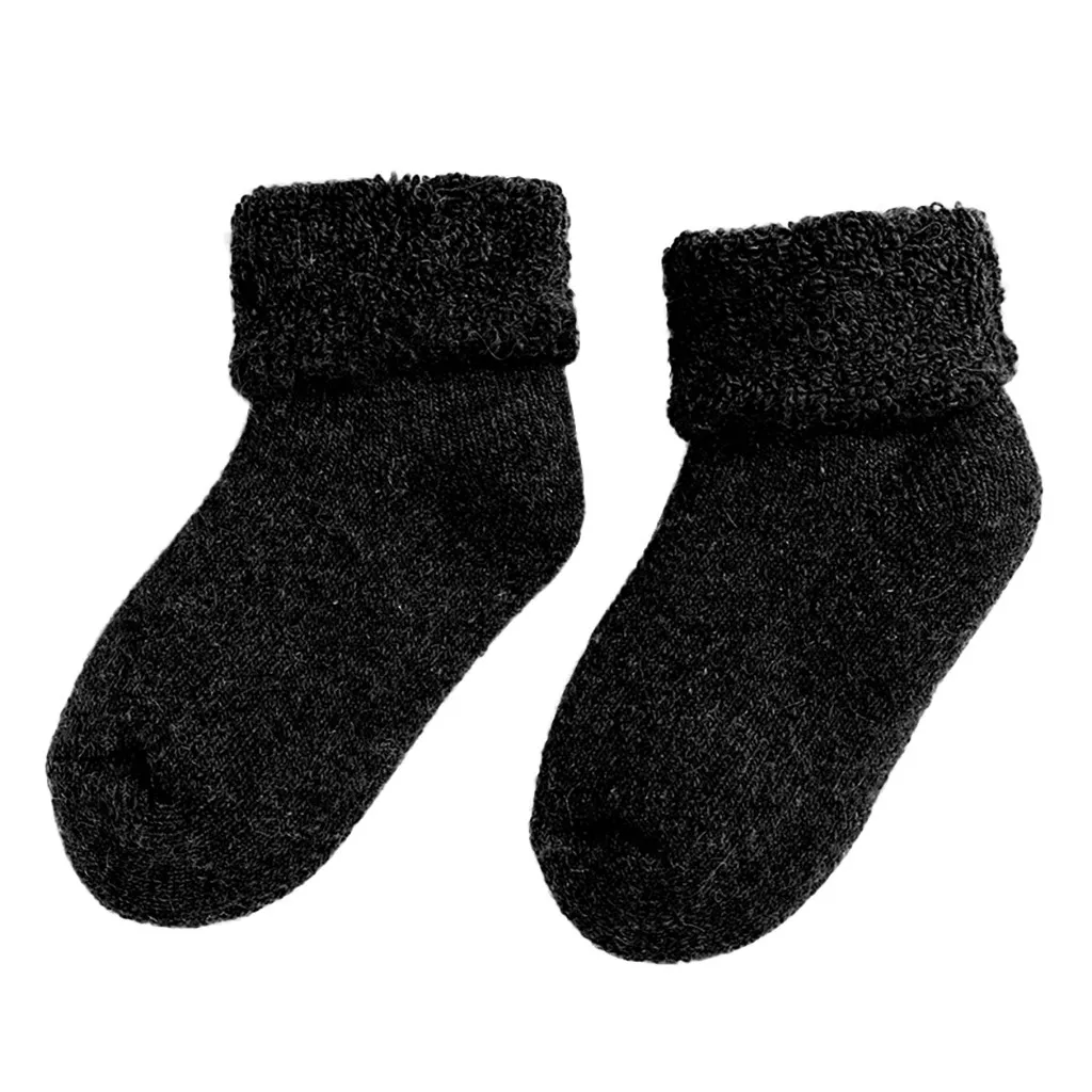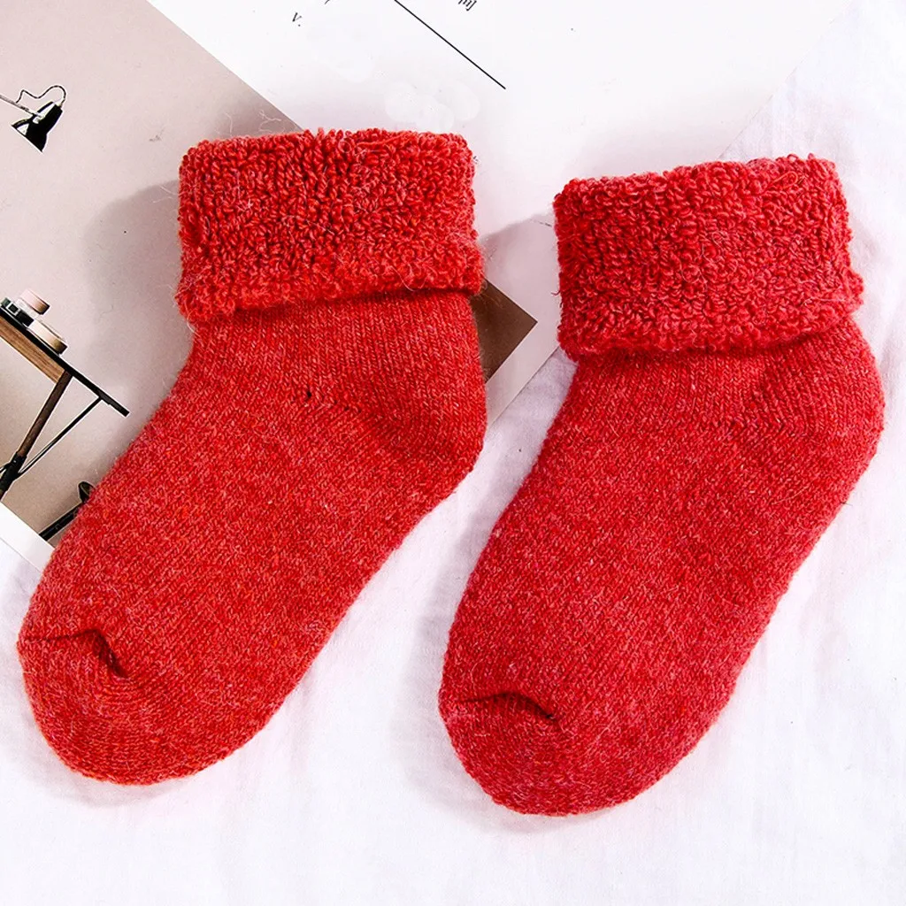 Зимние Утепленные шерстяные носки с отворотами для маленьких мальчиков и девочек Теплые махровые носки