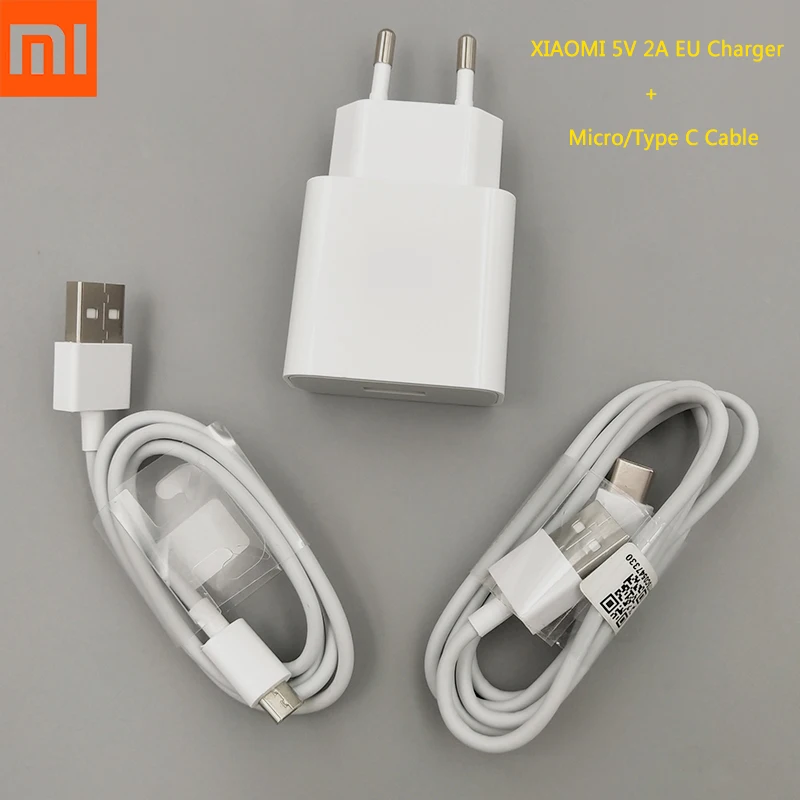 Оригинальный Xiaomi 5V/2A EU зарядное устройство адаптер USB 10W зарядное устройство Micro USB & Type C кабель для Redmi Note 4 5 Plus 6 Pro 4X 5A S2 Mi 5 6