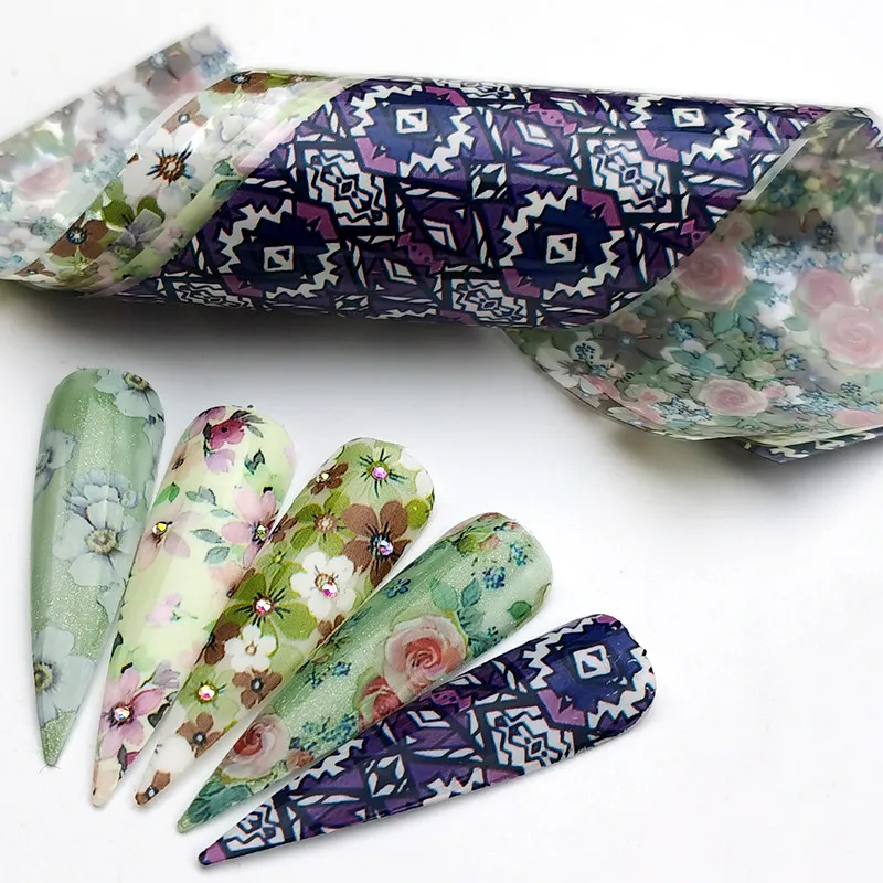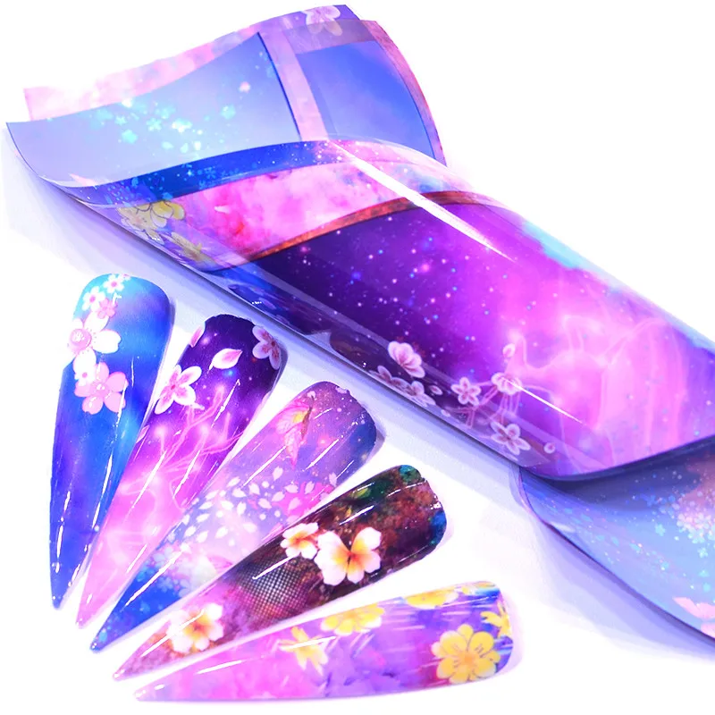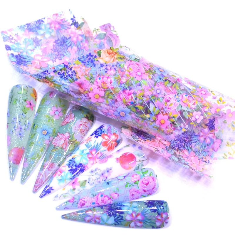 ZKO 15x4 см Фольга для ногтей серия свежих цветов розовая синяя фольга бумажная