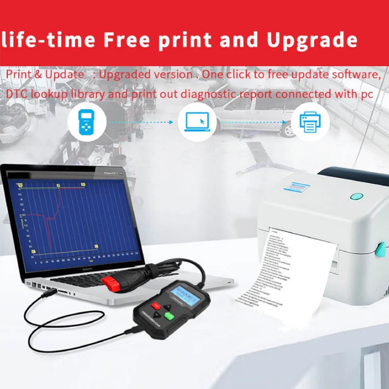 18. Печатает сохраненные коды неисправностей/замораживание кадра/показания данных в реальном времени через ПК, работает для всех систем windows.
