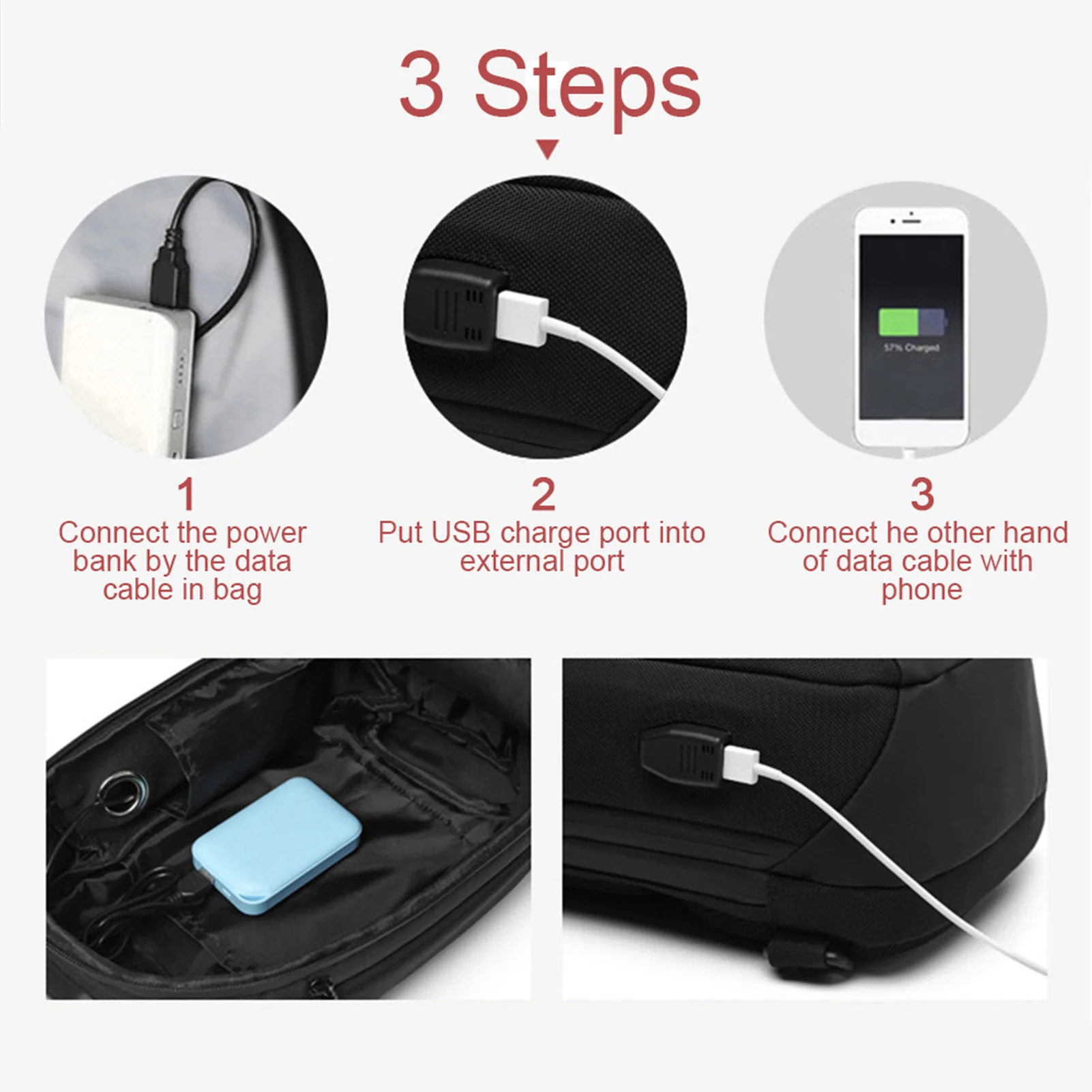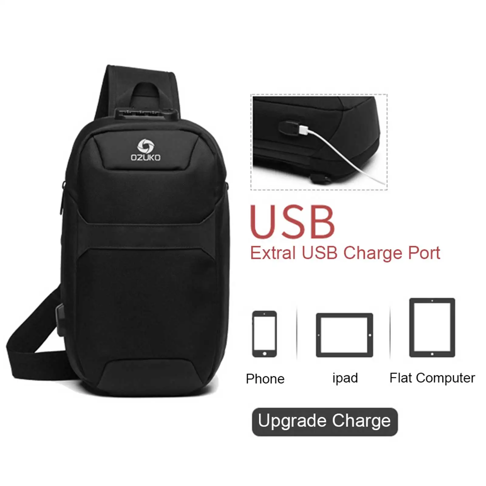 The chest bag is portable in size and weight, convenient to use. Super large inner capacity than normal bag. Extral USB charge port, free your hands. Upgrade safe level, anti-theft coded lock. Superior oxford fabric waterproof material.