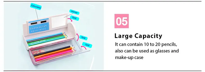 2. Чехол-карандаш имеет встроенное зеркало и солнечный калькулятор. Можно использовать как Чехол для очков, так и косметический чехол.