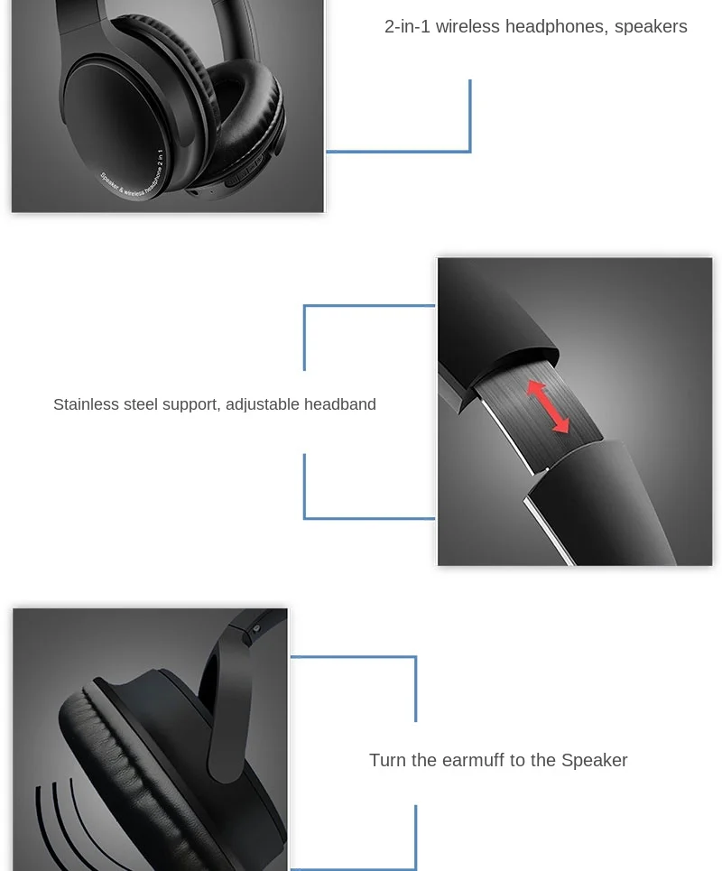Беспроводные наушники бас Bluetooth наушники стерео Складная гарнитура Регулируемые наушники с микрофоном FM Поддержка TF карта для мобильного телефона ПК