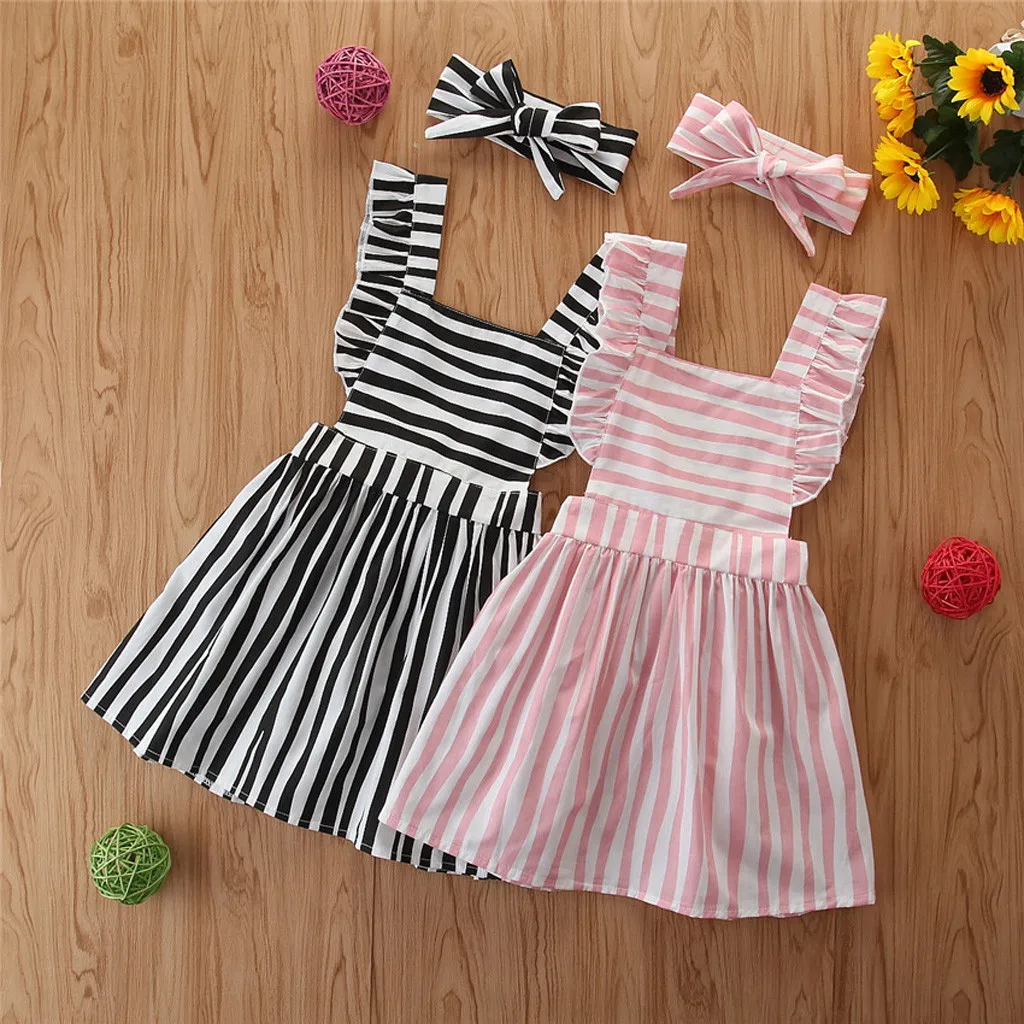 Fashion Summer Cute Newborn Baby Kids Girls Overalls Dress Leisure Stripe Toddler Girls Clothes Dresses Party Girl Dress vestido