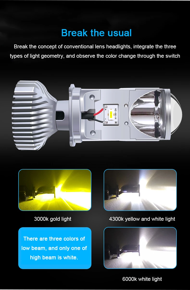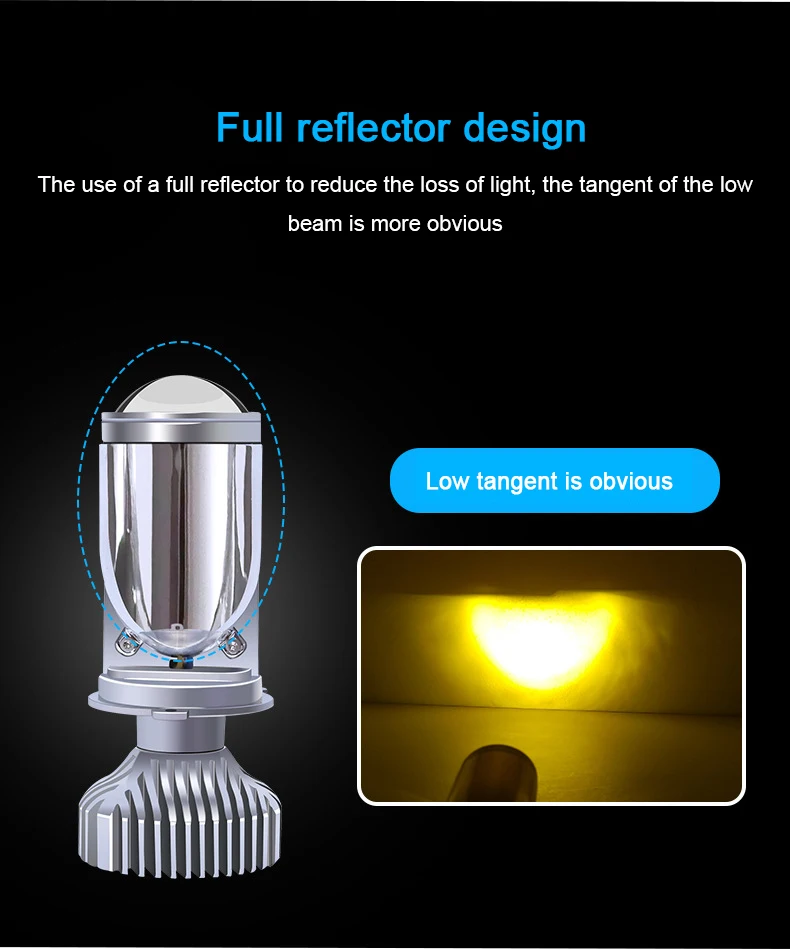 H4 Led Car Headlight Bulbs Y6S 3 Colors Lens Fisheye Lamp Far Near One Small Fisheye Super Bright Mini Lens H4 Led Headlight