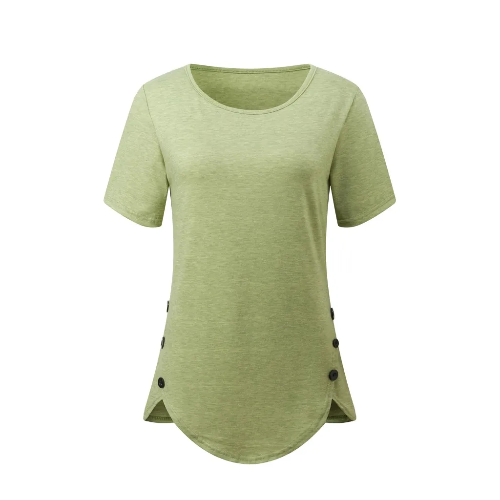 Модные Женские однотонные топы с круглым вырезом и короткими рукавами для отдыха