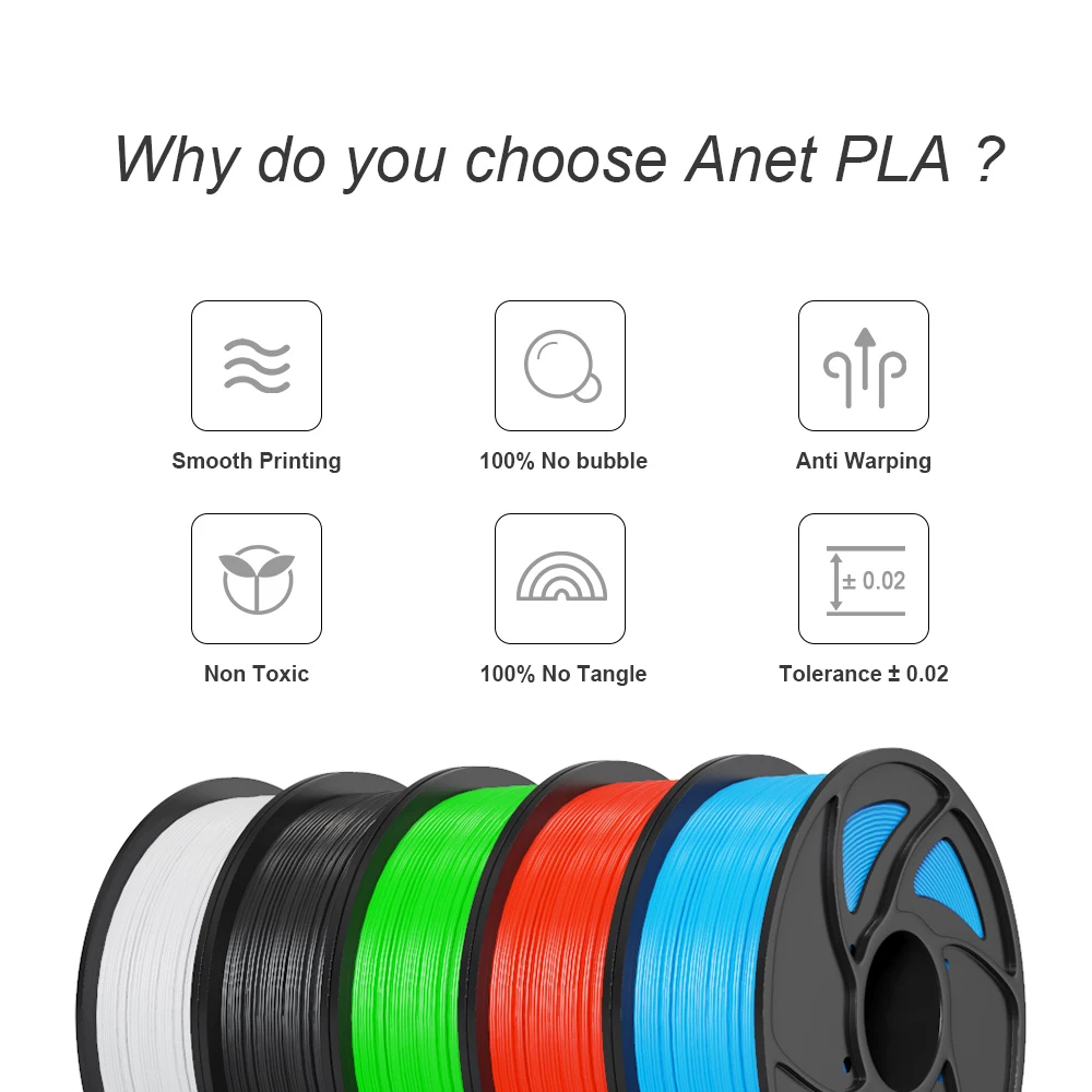 Anet PLA 3D-принтеры нити 1,75 1 кг катушку Высокая точность ± 0,02 мм Пластик нитей печати расходных материалов для 3D-принтеры