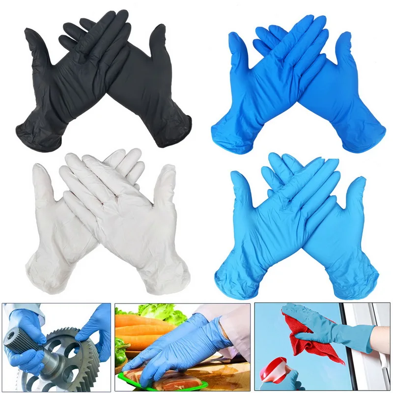 Одноразовые латексные перчатки, 100 шт., 3 цвета, для мытья посуды, кухни, медицинского назначения, работы, резины, садовые перчатки, универсальные для левой и правой руки