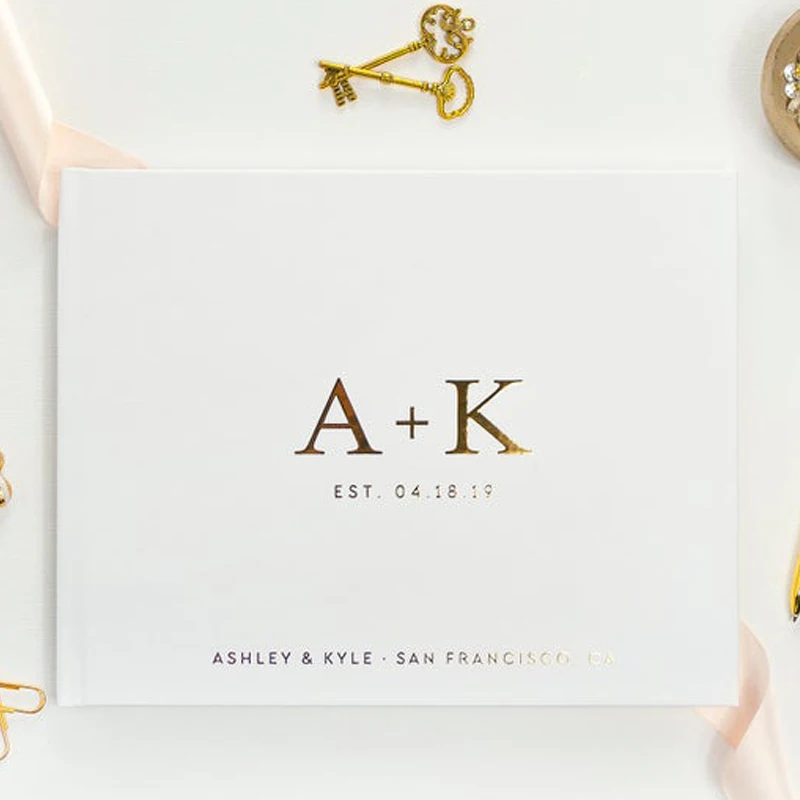 Оригинальная Свадебная книга для гостей, индивидуальная книга для гостей из золотой фольги, книга для гостей с монограммой, альбом для свадебных гостей