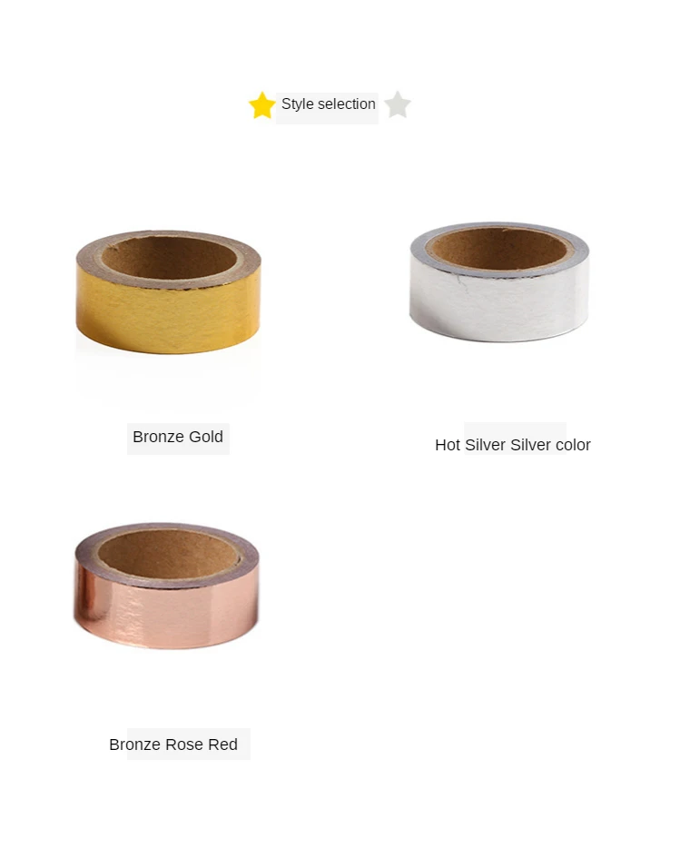 Материал: бумага Ширина: 0,6 "/1,5 см Длина: 16.4 фута/5 м. Очень Непрозрачный и милый. Цвет: золотой, серебряный, медный (розовое золото). Посылка: 1 рулон Блестит металлическим блеском.