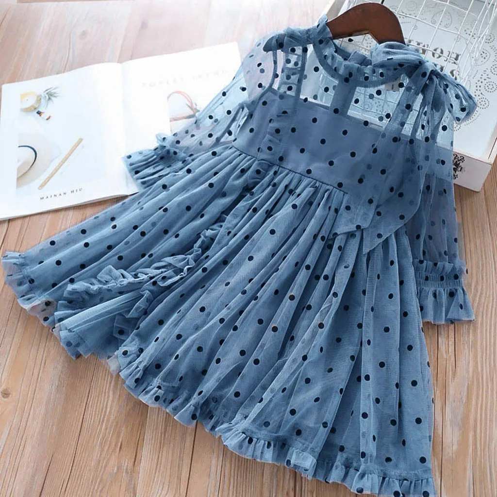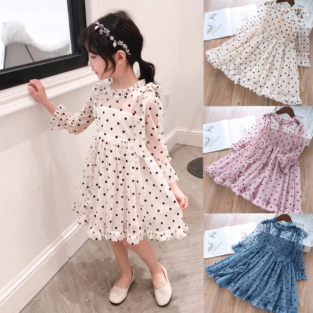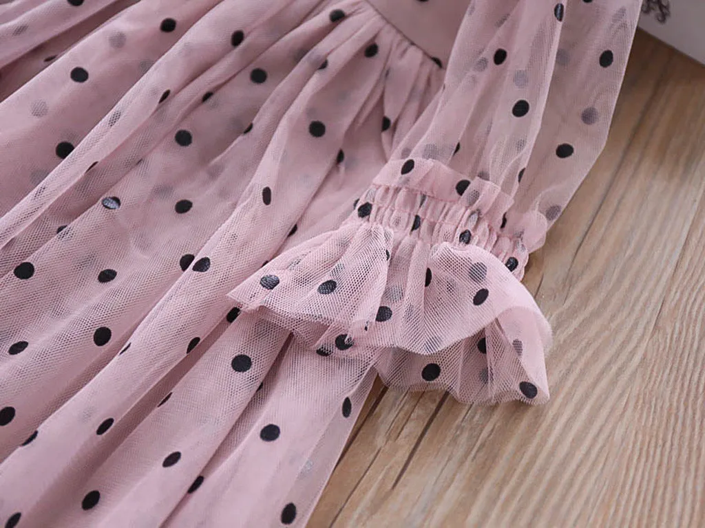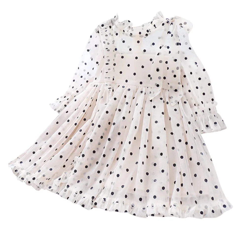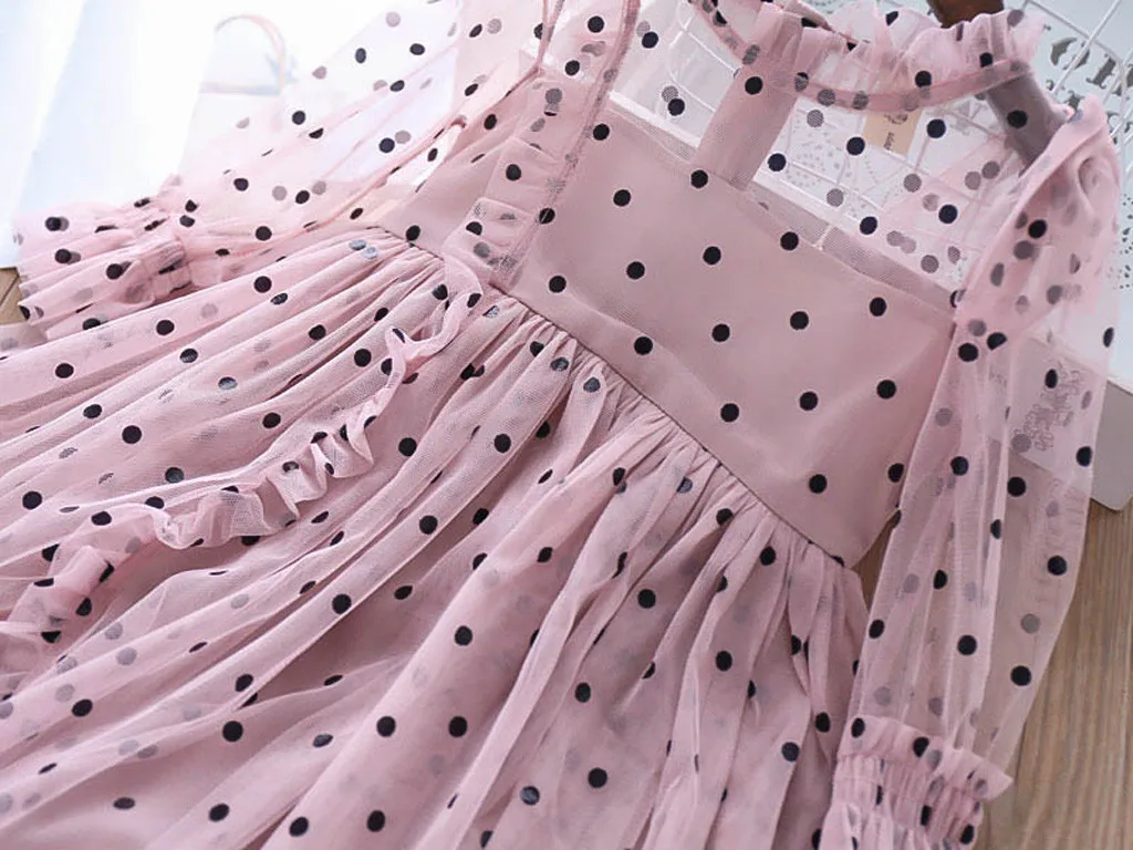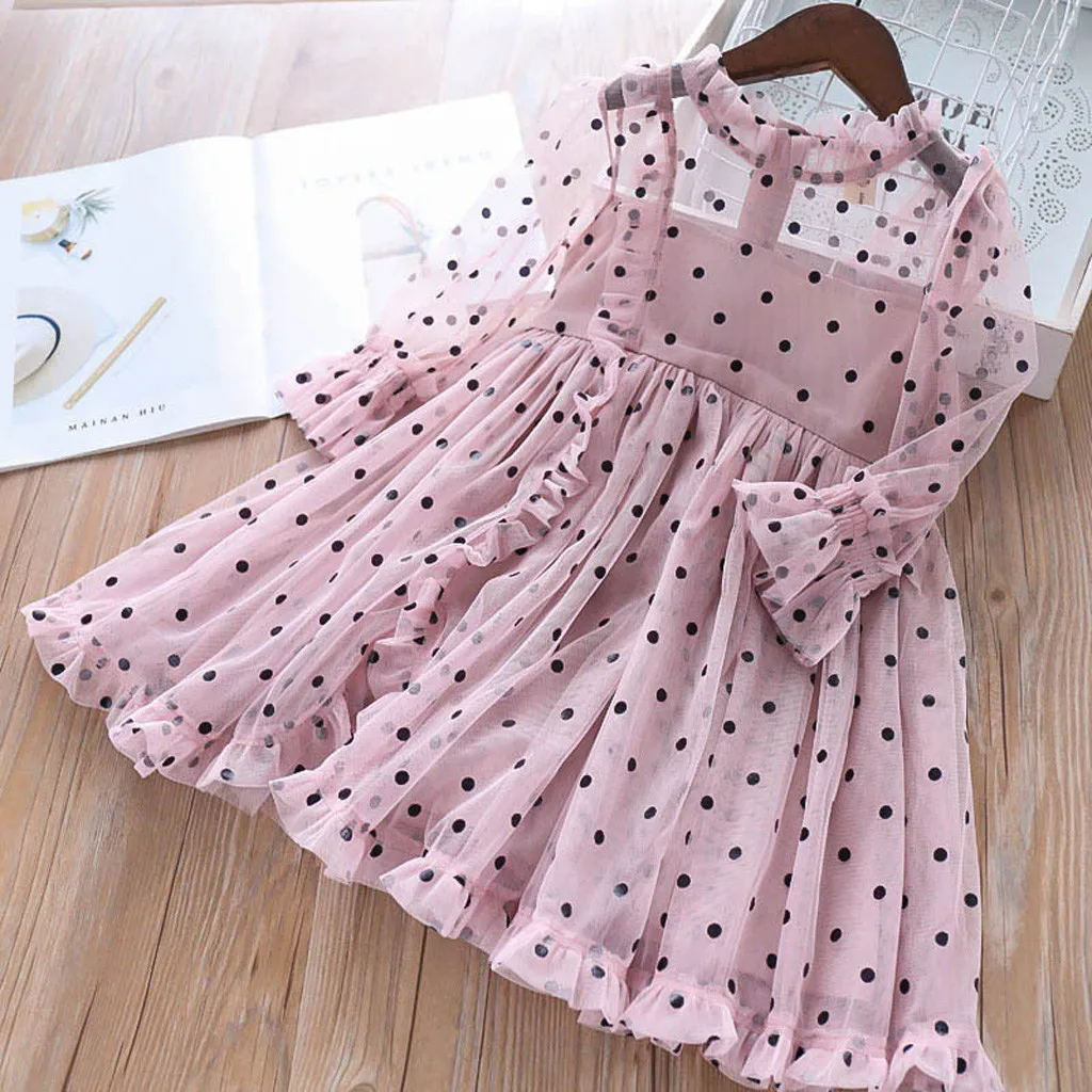 Газовое платье принцессы с длинными рукавами и оборками в горошек с бантом для маленьких девочек