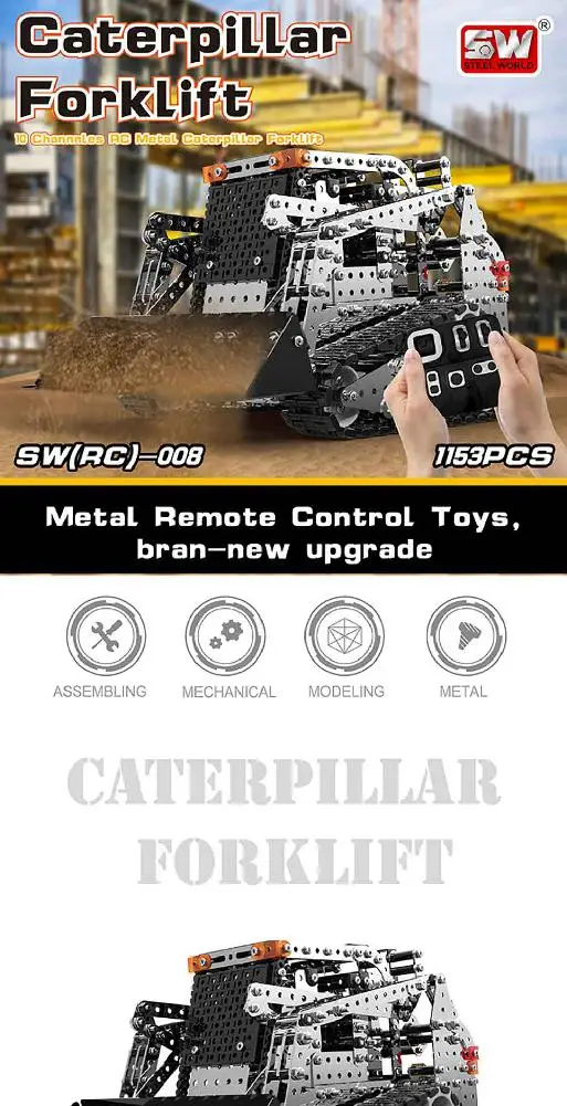 10-канальный пульт дистанционного управления может управлять: вперед, назад, вперед влево, вперед вправо, назад влево, назад вправо, повернуть налево на месте, повернуть направо на месте, ведро поднимается, ведро падает