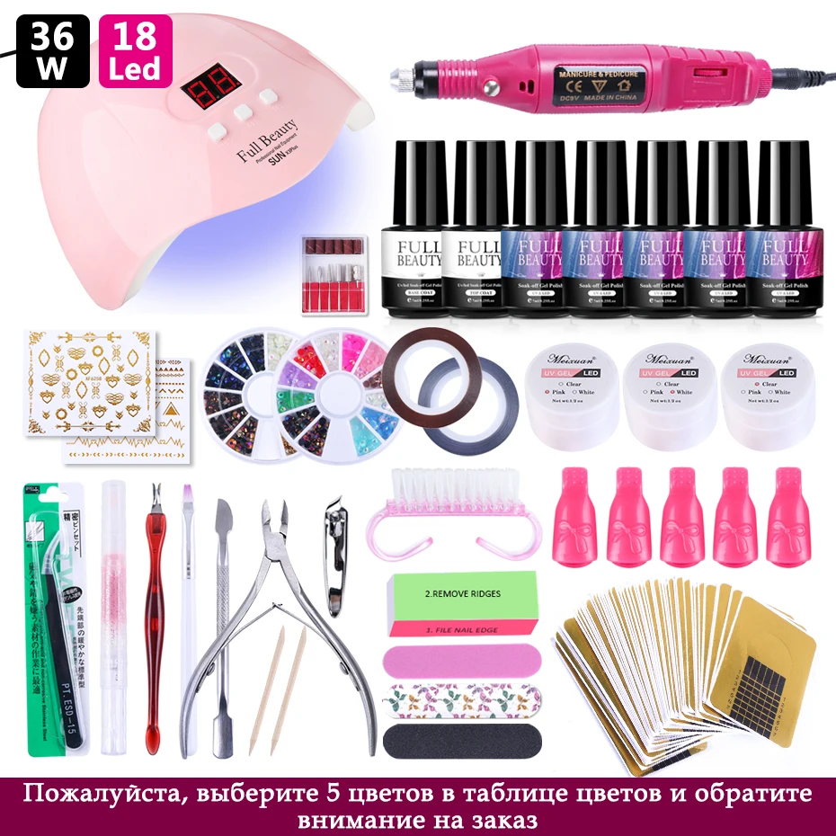 Артикул: Мода маникюрный набор Состояние: 100% новый бренд Сушилка для ногтей: 90W/ 72W/ 30W Мода дизайн ногтей: Стиль 1: белый/прозрачный/розовый акрилового геля Стиль 2: золотистые/Серебристые полоски ленты Стиль 3: золото дизайн ногтей наклейки Стиль 4: Красочные Стразы для ногтей и украшения Упаковка: как на фото показывает