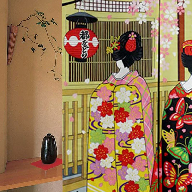 ABSF Japanese Style Long Doorway Curtain Kyoto Geisha Girls And Cherry Blossom Window Treatment Tapestry For Home Decoration 33.