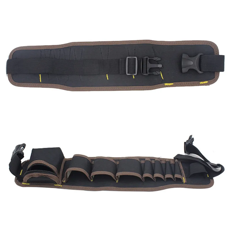 Fabric: 600D polyesterColor: black and brownSize: 210*240mmWeight: 145gPackage: 145gPackage list: 1*tool waist bagFeatures:1. Good quality-- made of thickened fabric 600D polyester, more wear-resisting, strong bearing force.2. Usage-- designed to be a belt pouch which could be used as a small waist bag, small tools pouch or utility belt pouch.3. Multiple pockets and loops-- it is designed with 2 web hammer loops and pockets, good helpers to settle your tools, keep them organized.4. Quick-release buckle-- adjustable belt with buckle, it allows easy fastening or unfastening, the length of belt also can be adjusted, so the belt fits for different waist.5. Suitable for-- perfect for construction workers, contractors, carpenters, framers, plumbers, electrician and so on.6. Enough space-- can hold anything, such as, wrenches, strippers, and vise grips, to screws, markers and hammers and more.7. Practical tool pouch-- a great tool bag to carrying small tools or items needed for any task so they're upfront, easy to see and accessible.8. Ergonomically design-- the distributed pockets keep organized.9. Design-- with 3 layers outside and 5 large squares in the middle and inside. Notes:1. Please allowed 1-3mm differences due to manual measurement, thanks.2. Due to the difference between different monitors, the picture may not reflect the actual color of the item.