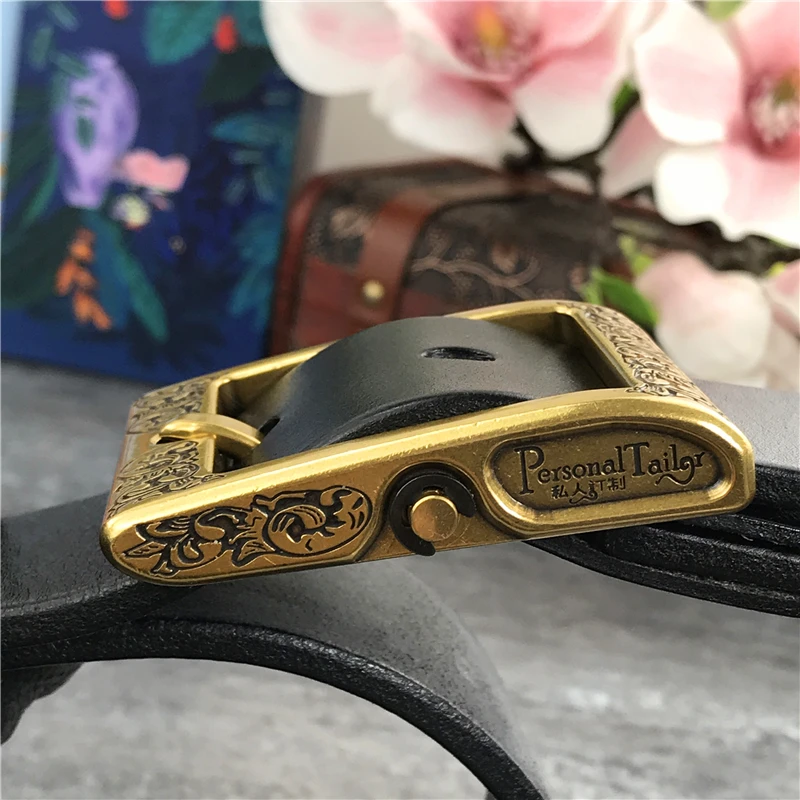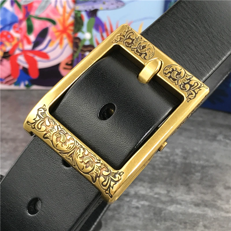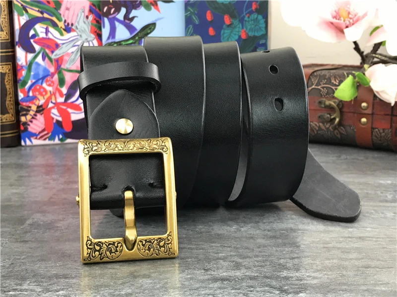 Роскошный тяжелый резной латунный ремень с пряжкой, толстый ремень из натуральной кожи, мужской пояс, мужской кожаный черный пояс для талии MBT0003![]()