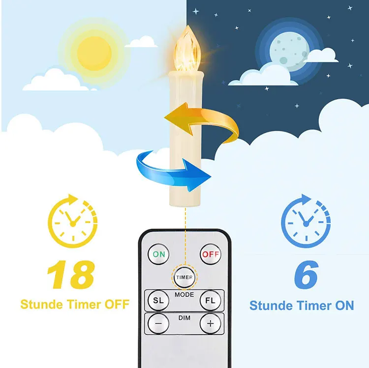 1. Свечи с дистанционным управлением, безопасны для детей и взрослых, не нужно беспокоиться о капающем воске или ветре. 2. Мерцающее пламя, как настоящая традиционная свеча; 3. Индивидуальный дизайн и форма, уникальный дизайн и легкость объяснения рынка; 4. Работающий от батареи, экологичный и экономичный, один аккумулятор AAA может работать в течение 150 часов освещения;