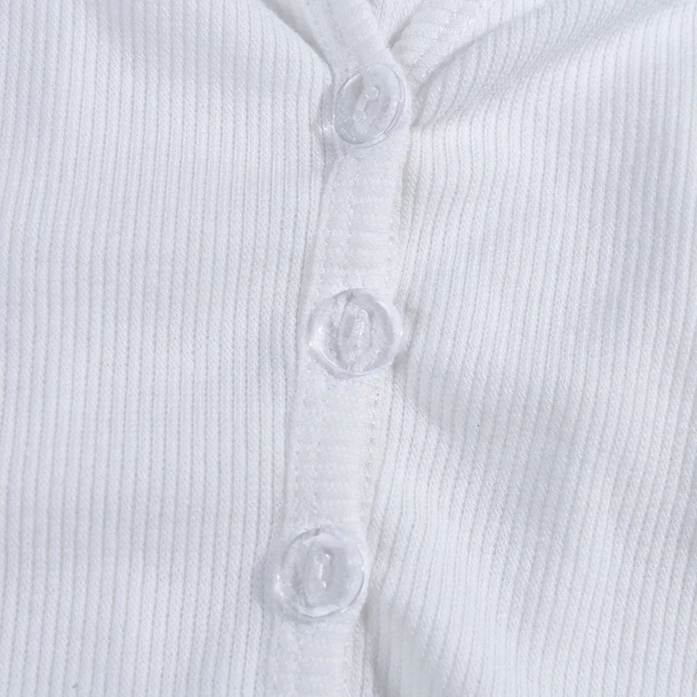 С v-образным вырезом, застежкой на пуговицы, коротким стилем, сексуальным и стильным.