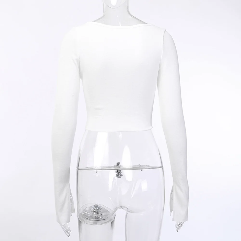 Сексуальный женский однотонный облегающий Топ с длинным рукавом глубоким