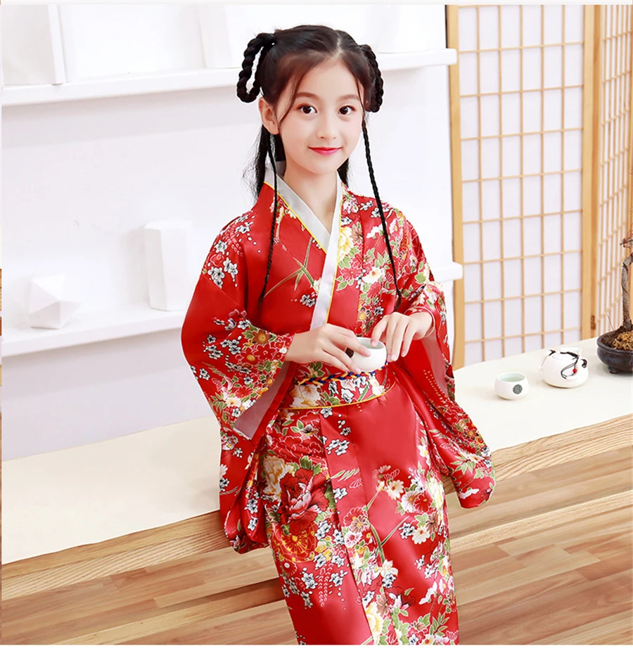 Халат для девочек, цветочное кимоно для девочек ясельного возраста, атласное шелковое платье, японский традиционный костюм, банный халат, летнее платье 2020 для девочек