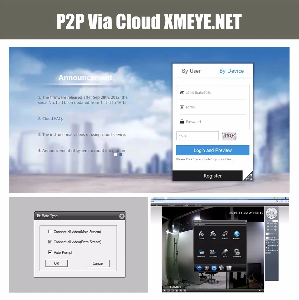 На основе технологии P2P (peer to peer), поддержка установки plug-and-play. Доступ к ip-камере через веб-интерфейс через Интернет-проводник, также поставляется с бесплатным приложением для смартфонов (Android и iPhone) для удаленного просмотра из любого места. Поддержка доступа к устройствам iOS и Android. Сканируйте qr-код для входа в систему. Загрузите бесплатное приложение в Apple app store / Google play.