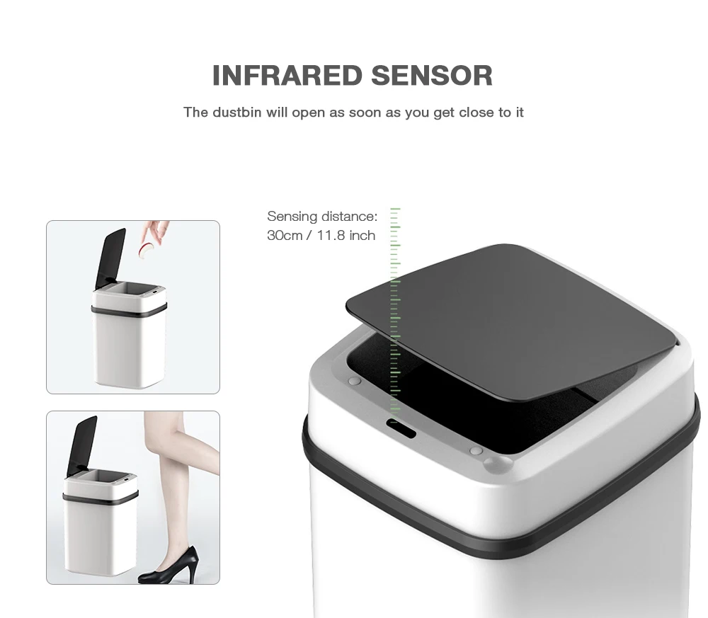 Это умный мусорный бак. Вы все еще используете традиционную корзину для мусора? Если в мусорном ведре нет крышки, ужасный запах распространится в комнате. Если на мусорном ведре есть крышка, то открывать ее крышку каждый раз раздражает и требует много времени. Эта автоматическая мусорная корзина будет хорошей новостью и избавит вас от проблем. Он автоматически открывается при обнаружении вашего внешнего вида и закрывается после вашего выезда. Более того, это энергосбережение и экономичность. Почему бы не взять один домой и не попробовать?