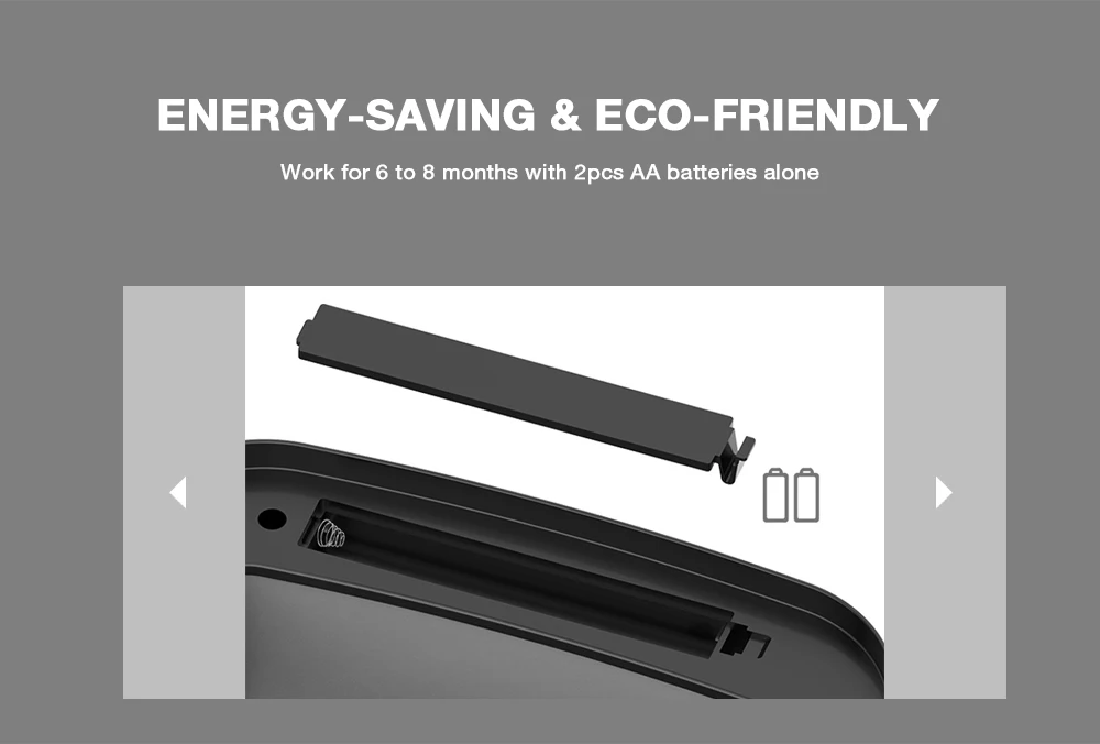 Может работать от 6 до 8 месяцев с только батареями AA 2шт.