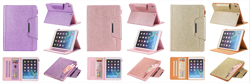 Блестящий чехол для iPad 9,7 2017 2018 Новый A1822 A1893 PU кожаный чехол для авто сна/пробуждения 6-го поколения Чехол с отделением для карт