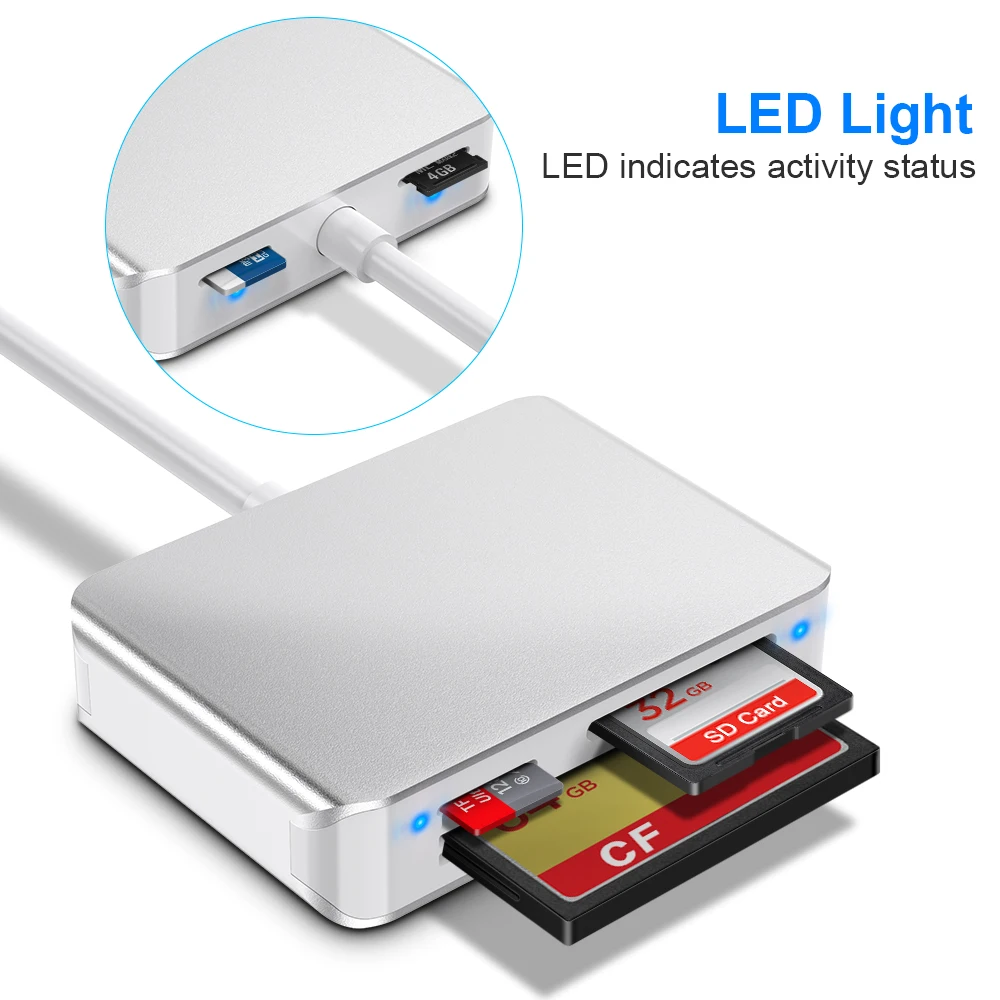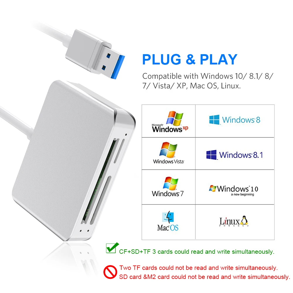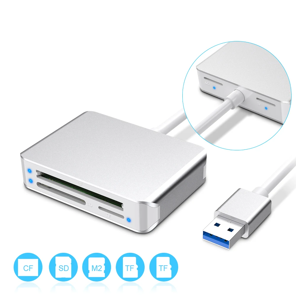 Этот кард-ридер USB 3,0 для чтения и записи карт на супер скорости до 5 Гбит/с. Он может читать и записывать на 5 карт одновременно, чтобы держать вас подальше от хлопот постоянного отключения и повторного подключения.