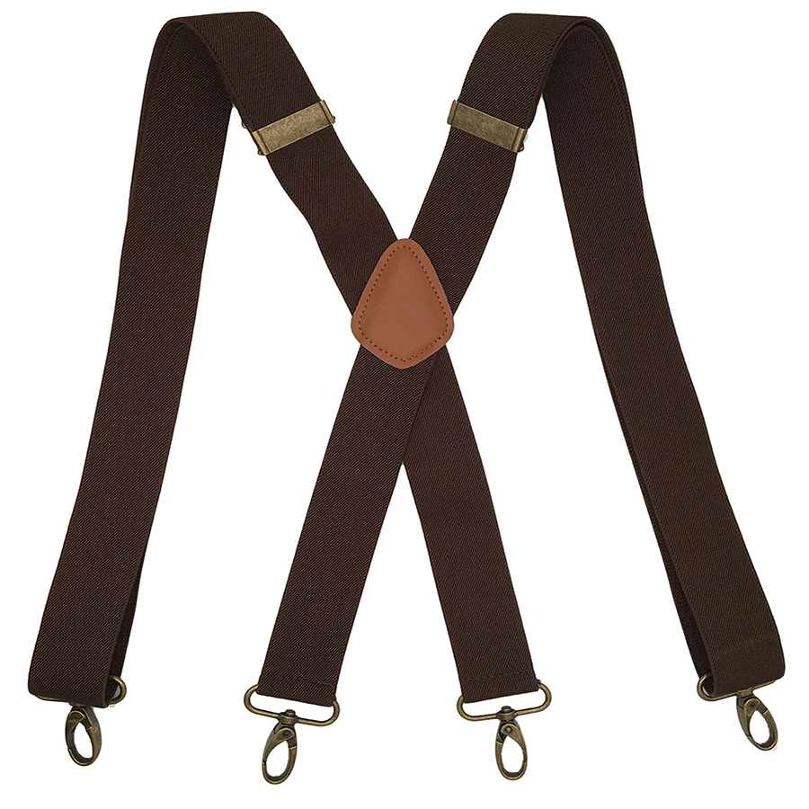 Этот подтяжки имеет 4 металлических шарнирных крючка, он имеет форму X-Back. Он подходит для мужчин с повышенной нагрузкой и может крепиться непосредственно к петлям для ремня. Он может предотвратить падение из штанов.