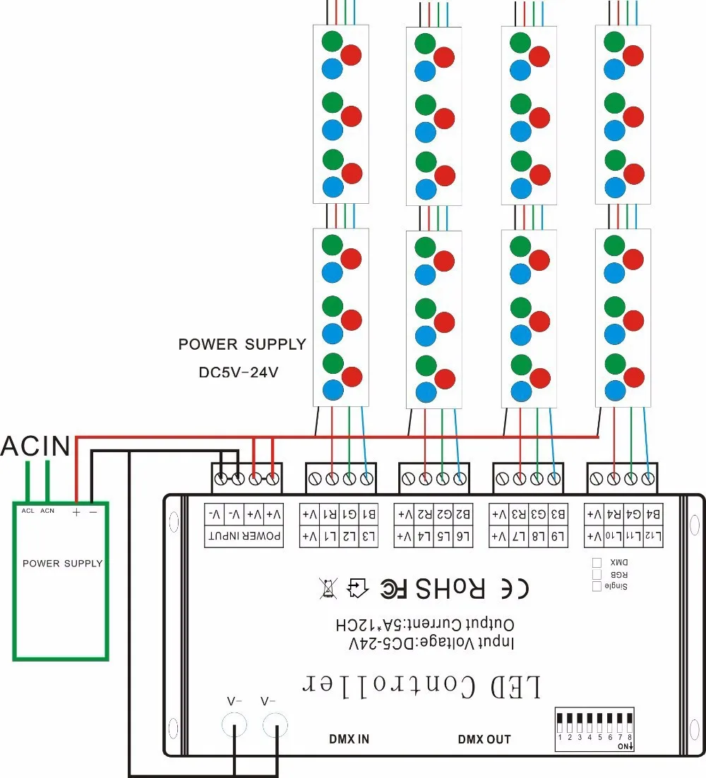 1 Этот тип контроллера работает только под DC5V-24V, который обеспечивается соответствующим контролируемым основным питанием, иначе контроллер будет поврежден.