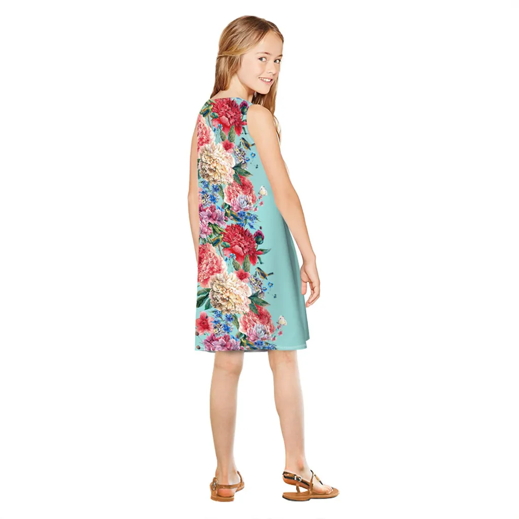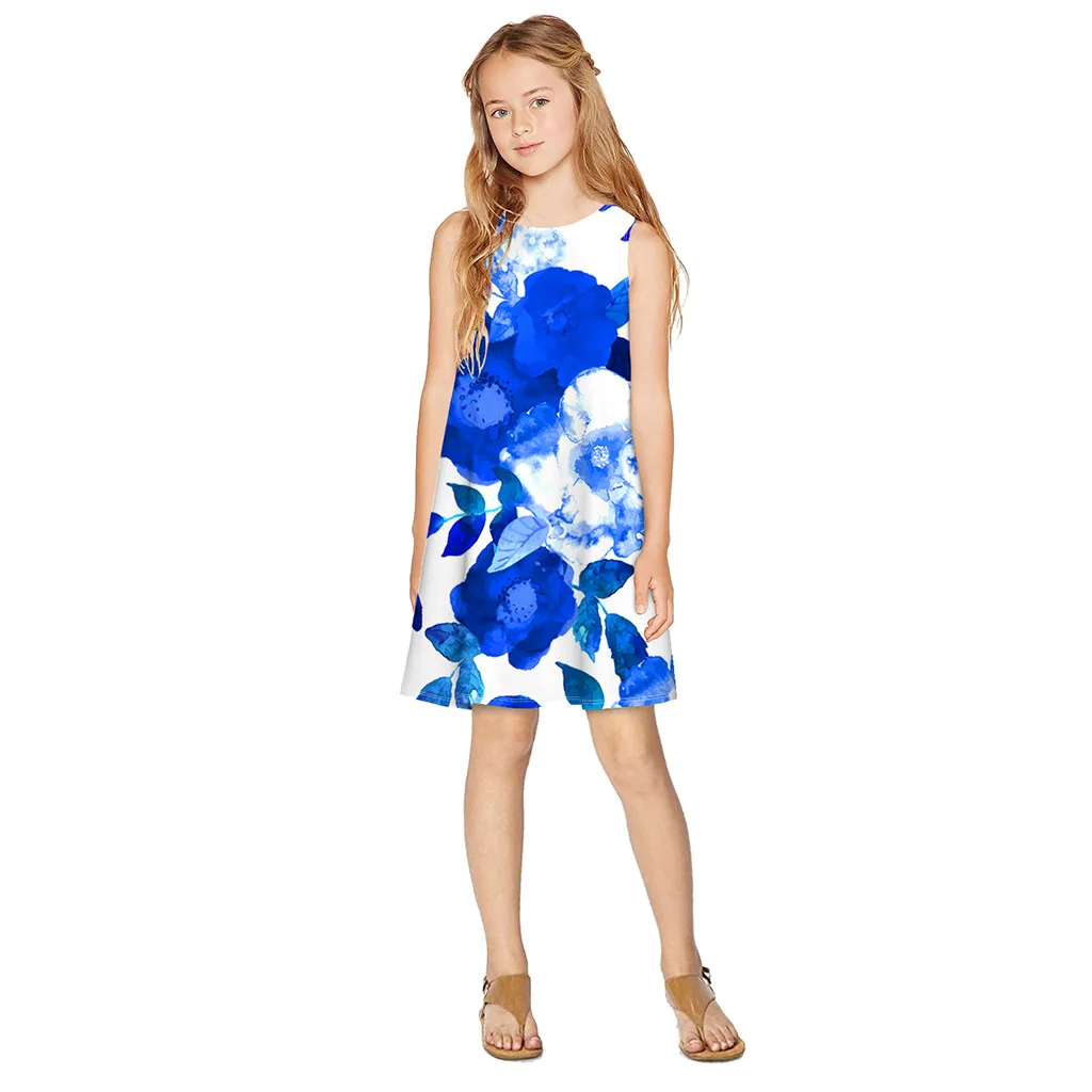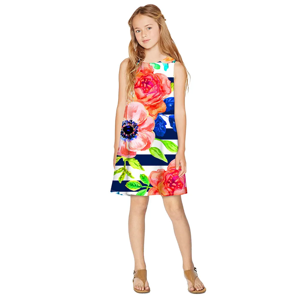 Детские платья для девочек-подростков 7/12 лет, платье-футболка без рукавов с 3D Цифровым принтом, летние платья для девочек, одежда для девочек t5