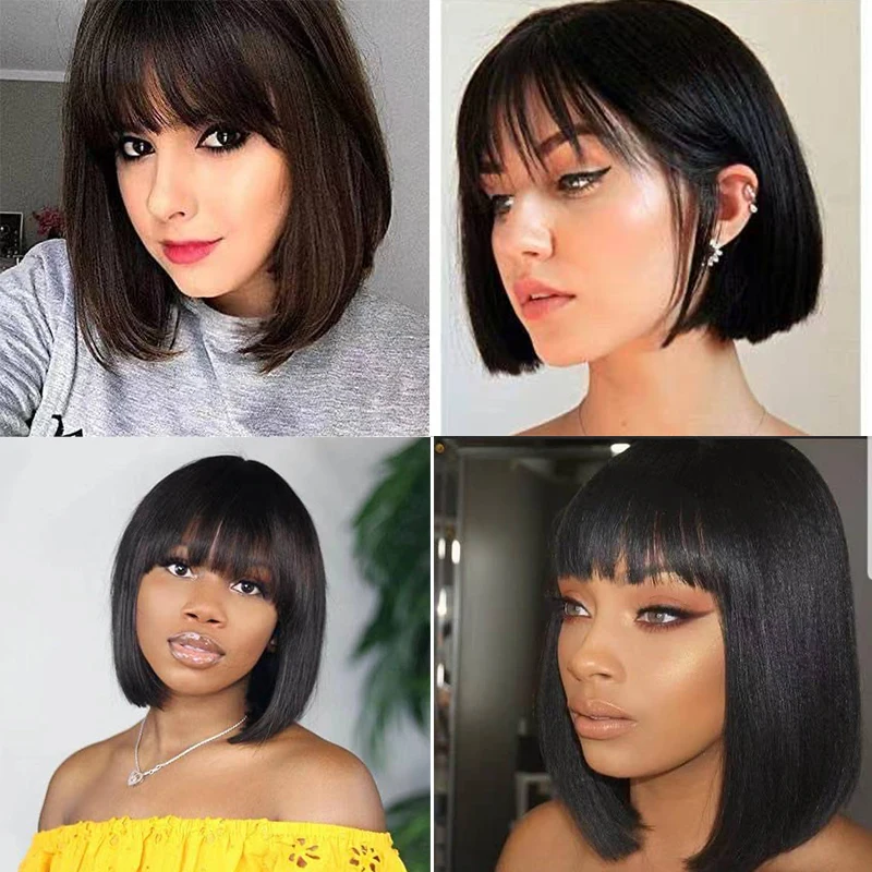 Парик Pixie Cut Bob, перуанские волосы Remy, прямые короткие человеческие волосы, парики с челкой для женщин